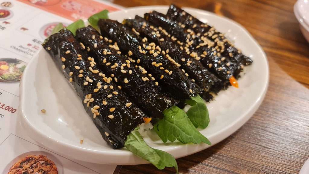 You can try everything here in this restaurant from raw Octopus legs, raw beef with pear shavings, noodles and more but the main items we tried were the gimbap and mungbean pancakes. Almost 80% of the customers were locals but they do have an English menu so tourist can still order their food easily. Most of the items in the menu come as a set so you will not be able to get 1 piece of pancake or 1 gimbap roll. Personally, I think the mung bean pancake I had here was much better than those at the open-air stalls as it was much more crispy yet non-greasy. The gimbap is in perfect bite sizes and you can taste the freshness of the ingredients in each bite