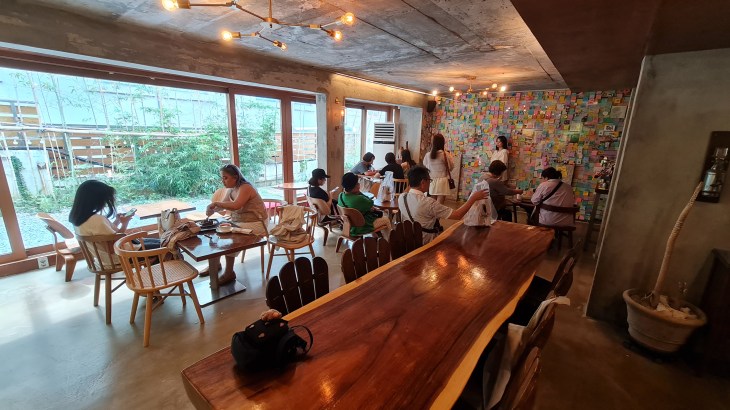 One level up is the main living area which is now the main sitting area for customers. The main highlight of this room is the wall plastered with post-stick notes written by armies from all over the world. There are so many of them that the first layer of the wall is covered and protected by an acrylic cover and notes have started to take over the cover as well