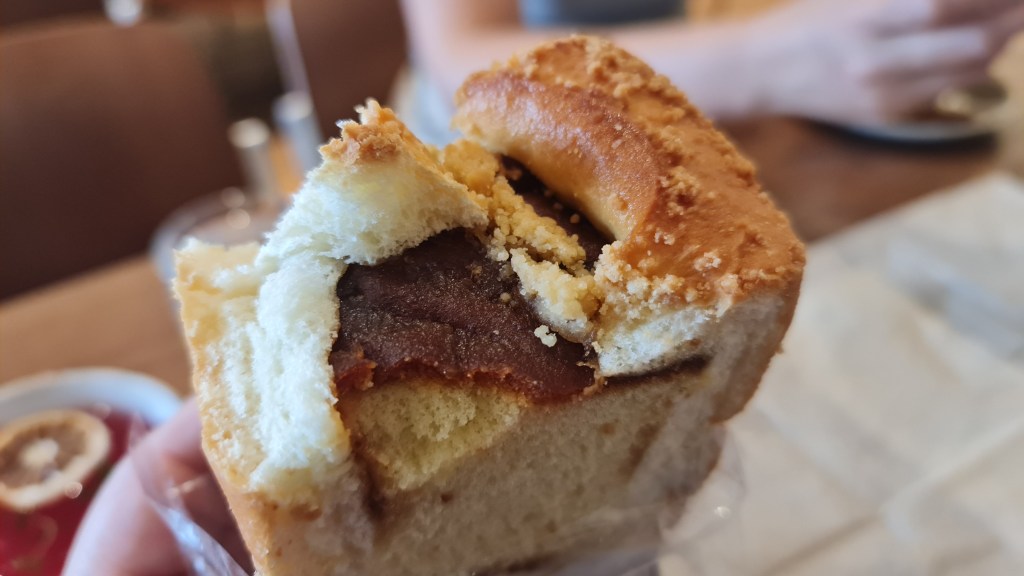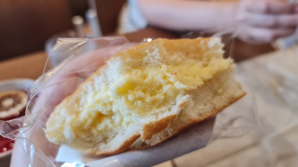 The cream puff bread is loaded with custard cream which is not too sweet and has a nice milky and creamy texture which is perfect with the soft bread. We also had the Soboro bread and red bean bread which were equally delicious but nothing too unique. Personally, I liked the cream puff bread and my friend swears by the butter bread and whipped cream bread which we did not buy this round as we were very full from other meals