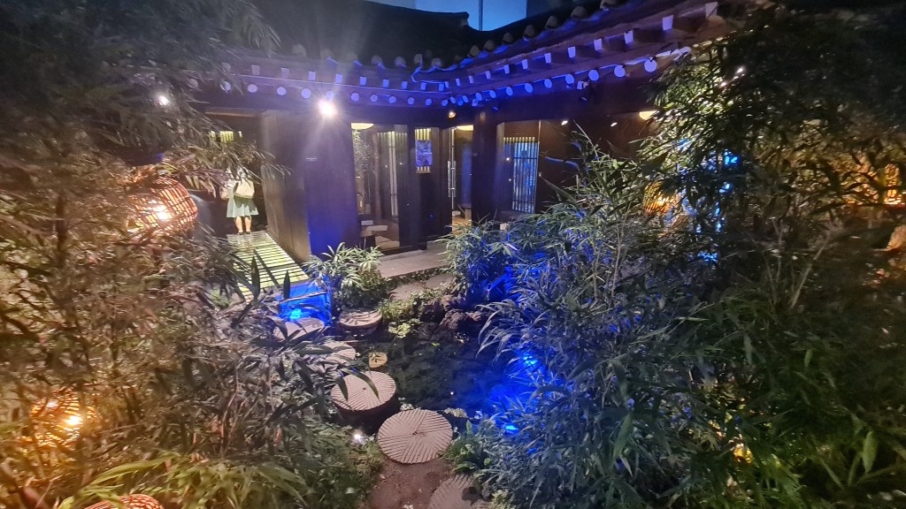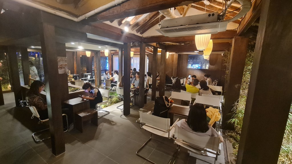 The cafe is converted from a huge Hanok house which spans many smaller rooms and courtyards allowing customers to choose to chill out in the space they prefer. There are water features, ponds and man-made streams in various corners of the cafe amidst the luscious natural greenery and bamboo garden to transport customers into a tranquil environment which seems out of the modern city