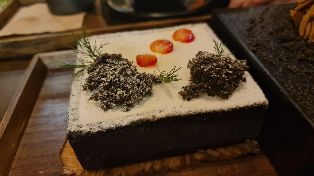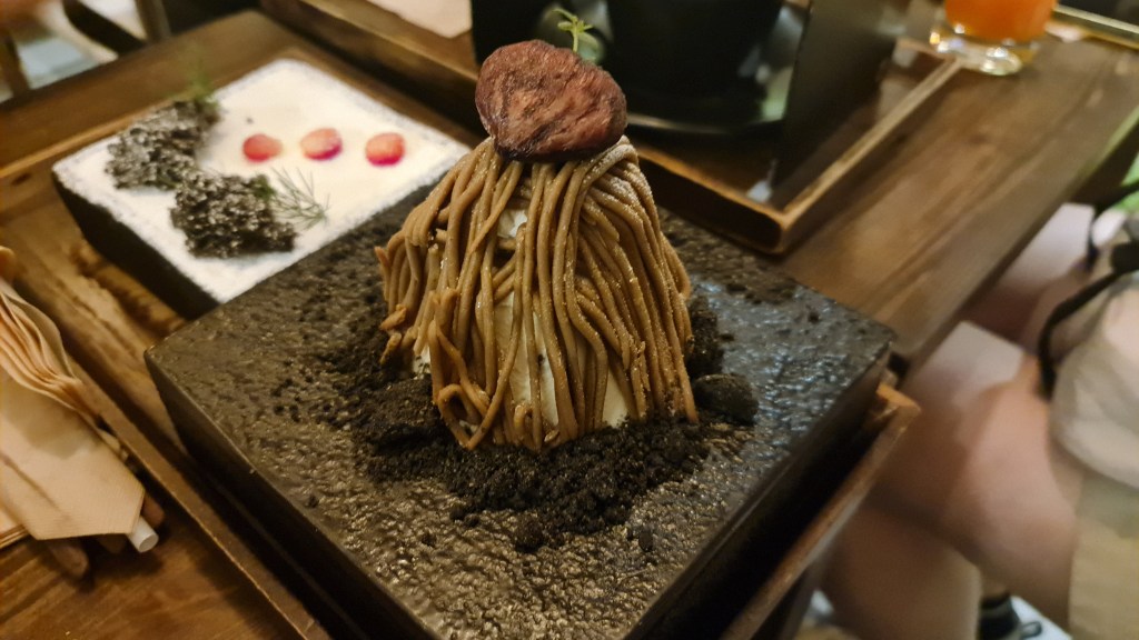 We also ordered a chestnut Mont Blanc which was served on a dark stone block and decorated with a dried chestnut. The dessert itself was smooth and creamy with a fragrant chestnut paste which is not overly sweet. The cream and chestnut paired well and were light on the palate
