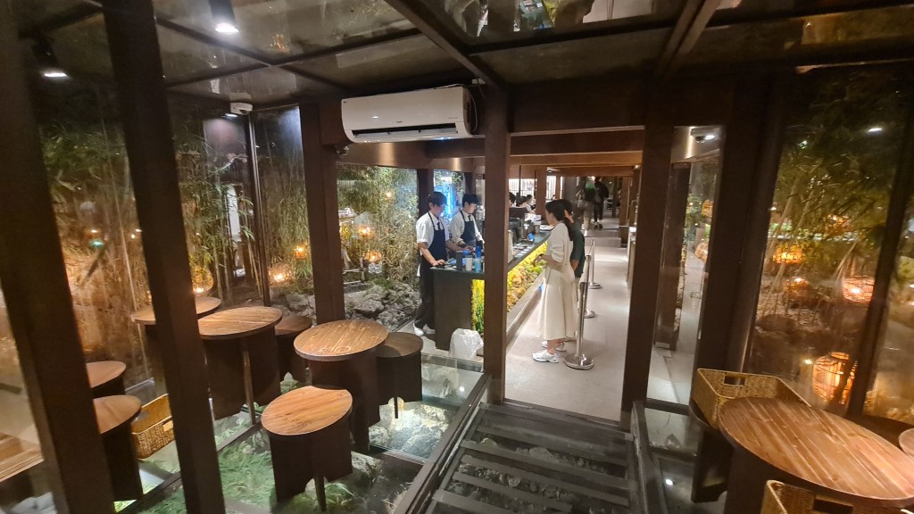 We ordered 2 iced fruit tea sodas as well as a hot black tea and while the tea tasted good, there was nothing too spectacular. Instead what intrigued me was the pot used for the black tea which was using the concept for drip coffee. It was a fancy way of serving tea which added to the experience of enjoying tea in a bamboo garden