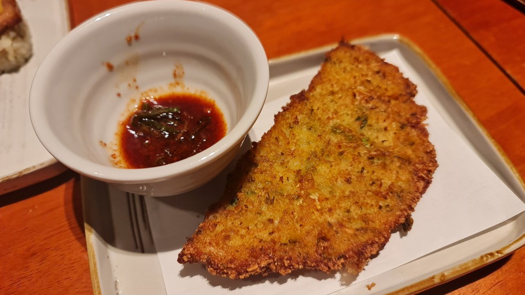 We also ordered the mung bean pancake as we craved it quite badly and surprisingly, the pancake was crispy yet not greasy with a soft and tender inside. Although the price is much higher than those you can get from the markets, the dish is still considered delicious especially when you add on the vinaigrette chilli sauce