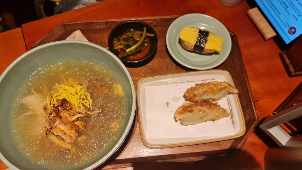 My friend ordered a cold noodles set which came with dumplings and a spam rice roll. The cold noodle broth was clear, refreshing and sweet according to my friend since I did not taste it as it was topped with beef slices. The broth was good on itself without the need to add vinegar or mustard to add flavour and the noodles also had great texture