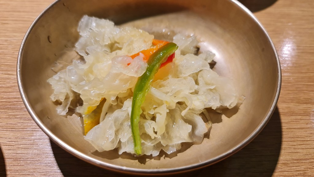 I have been to many Korean restaurants for meals and this has got to be the prettiest table setup for side dishes. The servers patiently ensure that all the side dishes form a beautiful round shape that looks vaguely like a blooming flower. There are also 11 dishes which is more than the usual restaurants. A few of the dishes left such a great impression on me; the snow fungus salad which has a tangy sweet dressing which was extremely refreshing, the lotus root which was crunchy with a creamy salad sauce and the acorn jelly which was an interesting texture