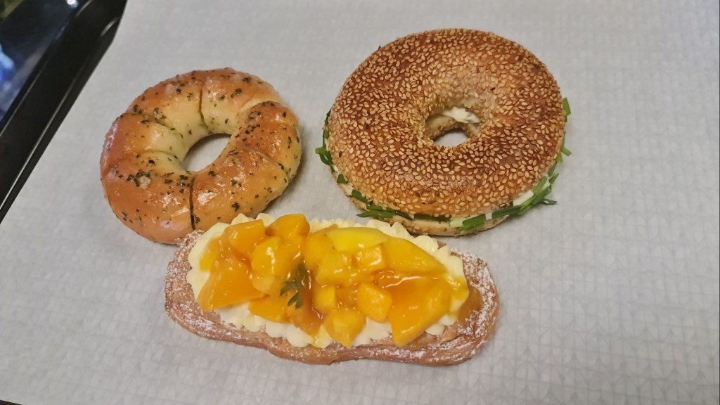 We had a garlic bagel, cream cheese spring onion bagel as well as a mango cream pastry. We also ordered a grapefruit ade which was refreshing. The breads and pastries were well made with a crusty bagel top and chewy middle which was perfect when combined with the savoury garlic or spring onion fillings. The mango cream pastry was surprisingly light and perfectly sweetened without any overpowering sugary flavours
