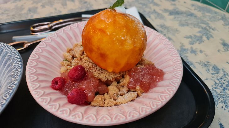 As we were still going to eat dinner, we opted for lighter menu items like the peach yoghurt ball on top of muesli and granola, honeycomb Greek yoghurt and a fruit ade. The honeycomb Greek yoghurt was a perfect match which is expected since it is offered by some yoghurt brands. The fresh honeycomb does make a difference with its natural sweet honey balancing out the sourness of the yoghurt. The fruit ade was normal and slightly too sweet in my opinion. The interesting item was the peach yoghurt ball which is really a frozen peach stuffed with Greek yoghurt. The entire bowl was very filling yet nicely balanced with the sweetness from the peach, tanginess from the yoghurt and the crunch from the muesli and granola. This would be a perfect breakfast item although it was also a nice snack in between meals