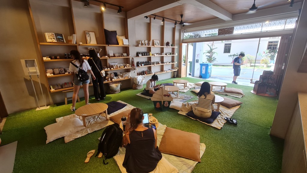 This is the current look of the grass area when I visited where they shifted most of the merchandise out of the main cafe and displayed them on nice wooden shelves. They also included more floor tables to accommodate customers who like to sit in the grass area. With the huge ceiling fans, it is actually quite cooling to be lazing in this area even during the afternoon