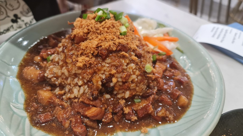 For mains, we had the Taiwan Lu Rou rice which came with pork floss topping and a side of pickled vegetables. The serving was pretty huge since it cost SGD 13.80 which is multiple times more pricey than usual lu rou rice. The gravy was thick but not gluey and came with generous amounts of pork belly chunks. The flavours were not too bad with a deep savoury taste from the braising sauce and the meat was cooked till soft and tender. The flavours were however not really similar to what I had in Taiwan