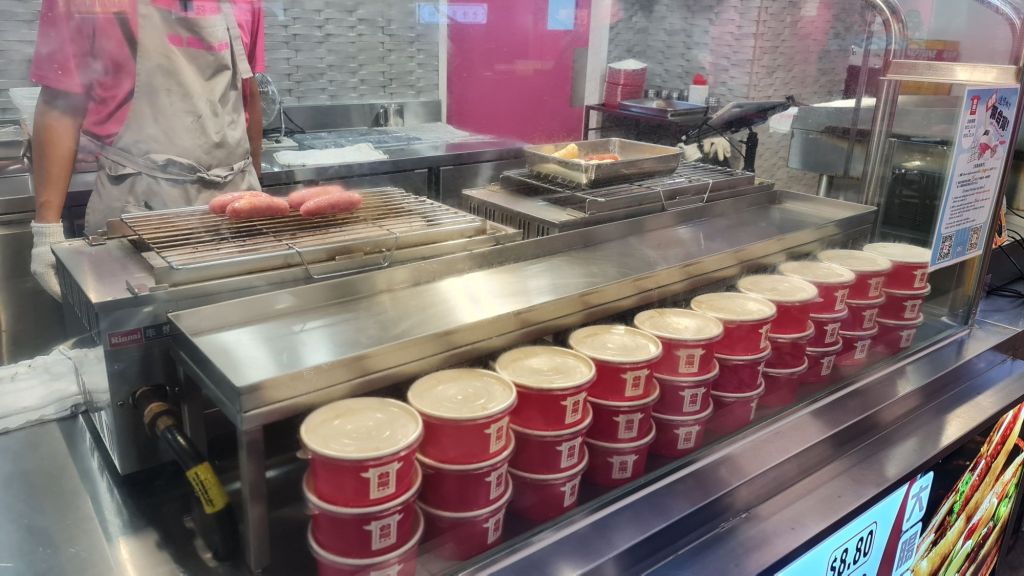 As I visited after lunch, I made sure I only got a couple of items to do a dipstick test on the food. Before my visit, I spoke to a popular Taiwanese YouTuber and they told me some of the food was quite authentic in taste whereas some was just off. The price was also acceptable for some dishes and too much for some. Some of the things we got; were the Frogs Lay Eggs drink which is basically like a grass jelly drink with boba, sweet potato balls, grilled pork intestines with onion and chives as well as the glutinous sausage wrapped with Taiwanese pork sausage