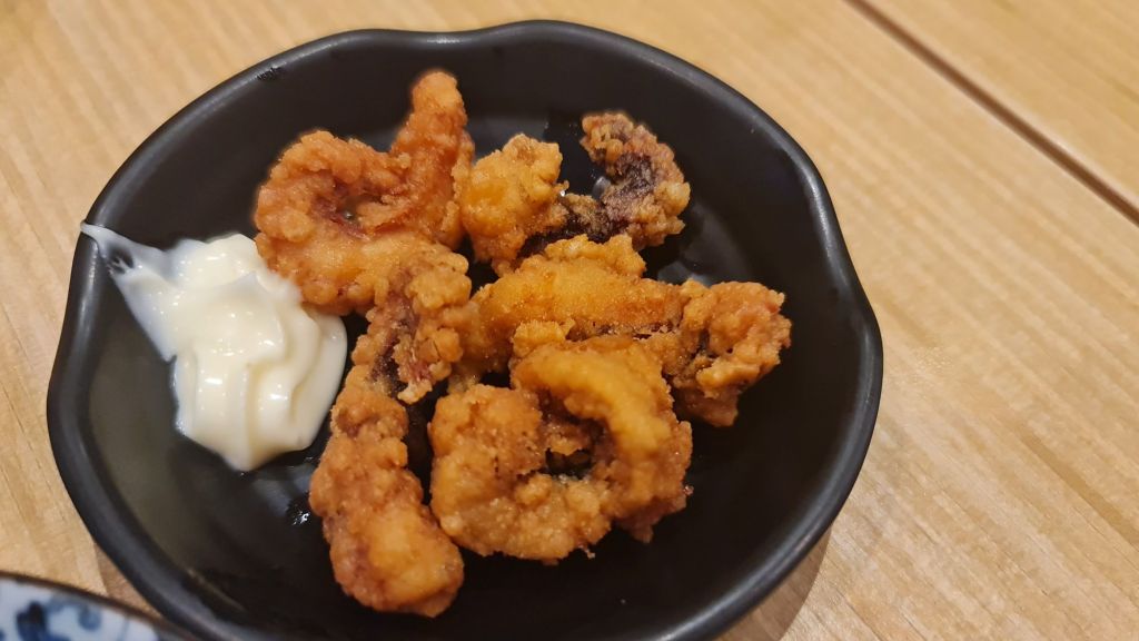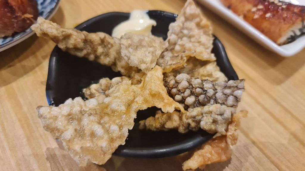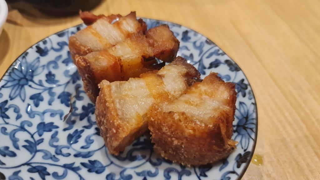 The next group of items we ordered were from the fried list which can hardly go wrong except the miniature serving in each order. The fried octopus leg is considered 1 portion which was served on a small dipping plate whereas the prawns were an order of 6 which came on a bigger porcelain plate. The fried dishes were all well-fried and crispy and most importantly not overly greasy. The only exception was the pork belly which was slightly tough to bite and the skin was not extremely crispy