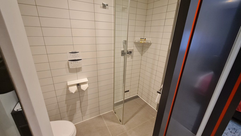 The space on the left of the entrance is the open toilet as well as a separate shower area. If more privacy is needed, there is a bigger sliding door which closes this space from the opposite-facing sink and storage area. As I am staying alone, I usually leave the sliding door open as it is slightly heavy and a hassle to open and close all the time. The space of the bathroom is smaller than most business hotels but the strength and hotness of the shower are great. The toilet comes with a bidet and drying functions