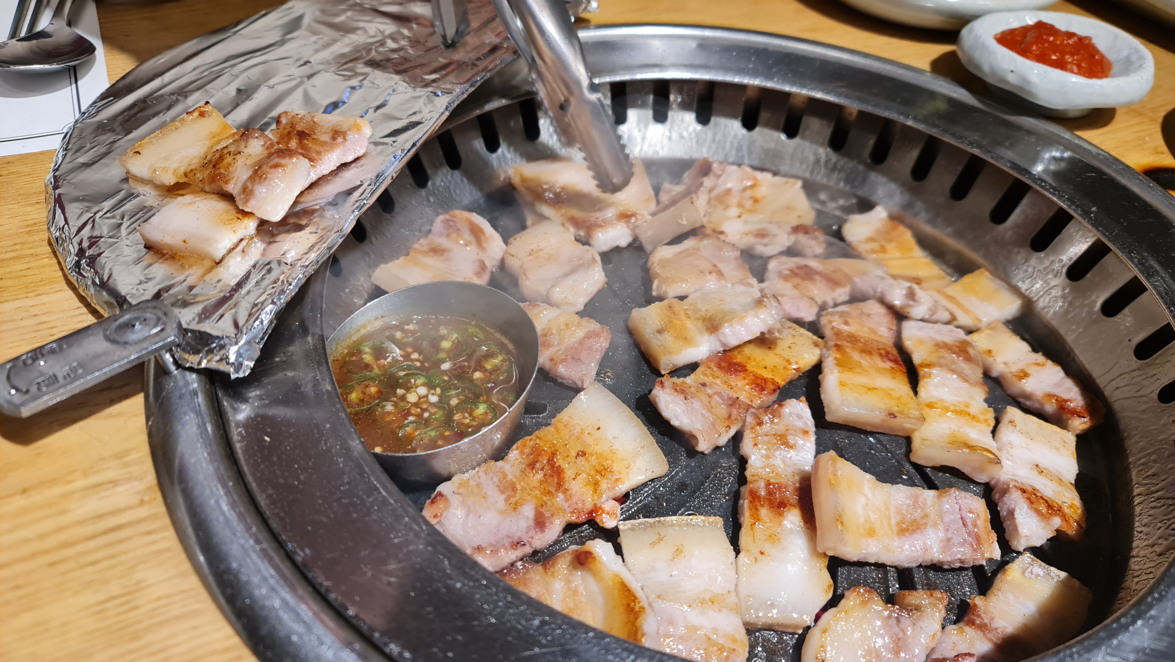 In terms of the menu, I did not look at it thoroughly as my Korean colleague was doing all the orders but we did a big order of Korean beef ( Hanwoo) for most of my colleagues who ate beef as well as a pork belly order for me. Even though I did not eat the beef, the marbling looked fantastic and my colleagues were making satisfied ‘hmms’ throughout the meal so I can conclude the beef must have tasted wonderful. The plus point was the servers cooked all our meats for us. The pork belly was thick cut but I personally prefer pork collar which they do not have on the menu. For pork, they only had pork belly and marinated pork whereas they had a much wider menu for beef items