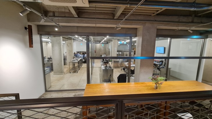 Right in front of the counter, is a spacious shelf selling Blue Bottle merchandise like mugs, tumblers, coffee flasks as well as slow-drip coffee equipment. To the right of the counter, you can see all the available coffee beans for sale at the outlet as well as a simple explanation of the beans profiling. Further right is a very interesting enclosed workshop area where we can see baristas in training learning how to make coffee as well as learning about different roasted beans