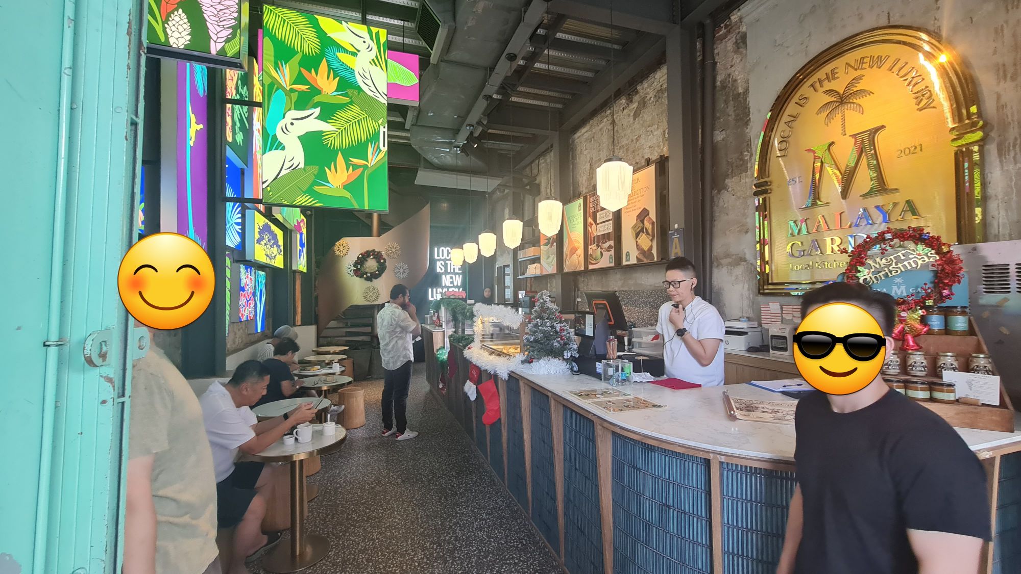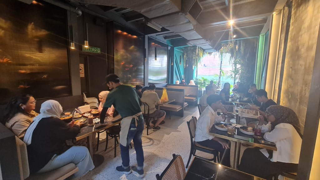 The interior design was more concrete-styled compared to the exterior and the Malayan jungle concept is only kept at the floor-to-ceiling windows and not uniform throughout the cafe