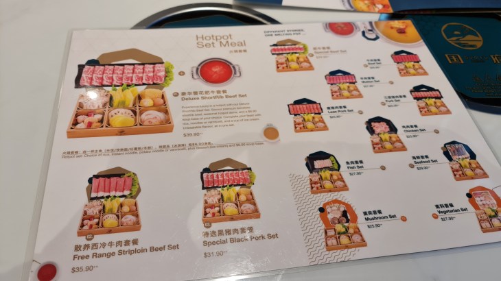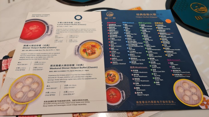 The restaurant serves set meals, al la carte buffet and al la carte orders. The classic buffet is priced at SGD 33.90 for lunch and SGD 36.90 for dinner ( before tax). Weekend dinners on Fri and Sat are priced higher at SGD 39.90 ( before tax). Prices for children are also available and can be checked via their website. All buffet prices exclude the soup base and beverages; the average price for a single soup base is SGD6.90 and SGD 9.90 for a twin soup base. They have a total of 15 soup bases for selection and most are made using chicken bones but you can always check with the staff before ordering for any allergies