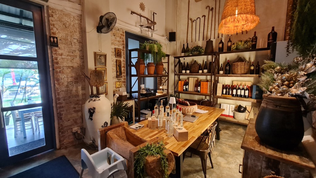 The moment you step into the restaurant, you get transported to an environment which feels like a countryside stone cottage home. Decorated with dry flowers and plants, the restaurant also has baskets of offerings filled with products flown over from Greece and other Medditerian countries. You can find exclusive Greek wines, other produce like olives, seasonings, dips frozen pastries and breads