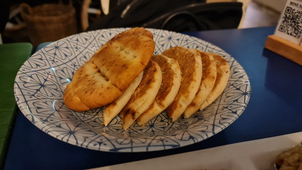 with chilli flakes. My personal favourite is the Harissa which has very nice smokey tomato flavours. The pita bread was also very well made with a nice charred fragrant but soft texture which is perfect when paired with the dips