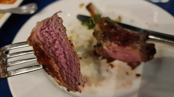 Last but not least, we had the grilled lamp chops with vegetables and potatoes. 3 pieces were priced at SGD 52.50 and 4 pieces at SGD 65.50. As there were 3 of us, we ordered the 3 pieces which were quite huge in size. I seldom eat lamb due to the gamey flavour so when I do have a lamb dish, I expect the dish to have no strong gamey flavours. The lamp chops served did exactly that and were perfect for me. The meat was cooked perfectly with a flavourful and crusty exterior and pinkish and tender inside. There were just enough natural lamb flavours in the natural meat juices without the overpowering gamey taste. While the prices were not cheap, I would definitely visit again just for the lamp chops