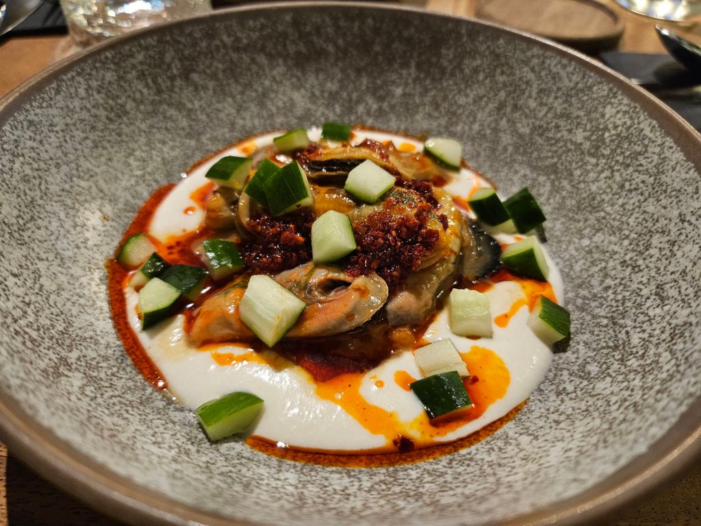 Their menu is rather simple with 8 different dishes for starters and another 5 as mains. We found the starters more interesting so we ordered almost everything in the starters category. The first to arrive was the Ajo Blanco which is pickled mussels, sourdough in chilli oil. The mussels were tender and had a fusion of flavours as the chilli oil tasted like sambal chilli and was paired with the sourdough cream which tasted like a light sour cream flavour. The combined flavour was refreshing and appetizing as the cucumber gave the dish a nice juicy crunch