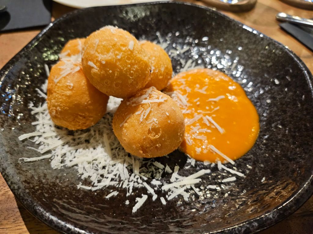 The last of our starters is the cheese balls which are made of Gruyere and Pecorina cheese and served with pineapple ketchup. The cheeseballs had a chewy texture with a lava centre but not very strong with the cheese flavour. I personally did not like the pineapple ketchup as it overtook the flavour of the cheeseball