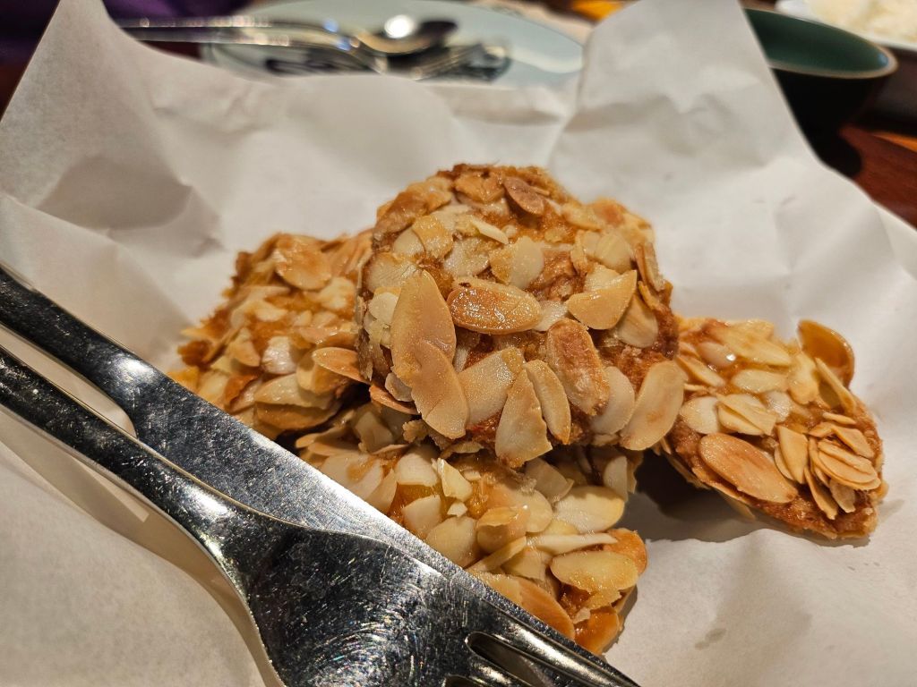 For a start, we had the deep-fried shrimp cakes with almonds which were extremely crispy and delicious. The almonds were crunchy and matched perfectly with the succulent prawn cakes. The almonds gave an additional nutty flavour to the shrimp cake which brought out the sweetness of the prawns