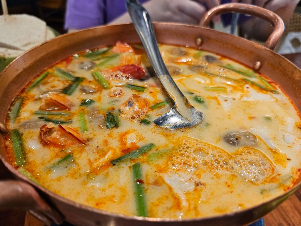Last but not least, we had the seafood tom yam soup which came in a firing hot pot so the soup was kept warm. The soup was packed with seafood like river prawns, squid, fish and mushrooms. The unique part about the soup is the coconut flesh which was cooked till soft and tender. It was a great addition to the soup which was the first time I had tom yam soup with coconut flesh. The soup itself was mildly spicy and sour so it was a well-balanced tom yam soup without being too harsh on the stomach