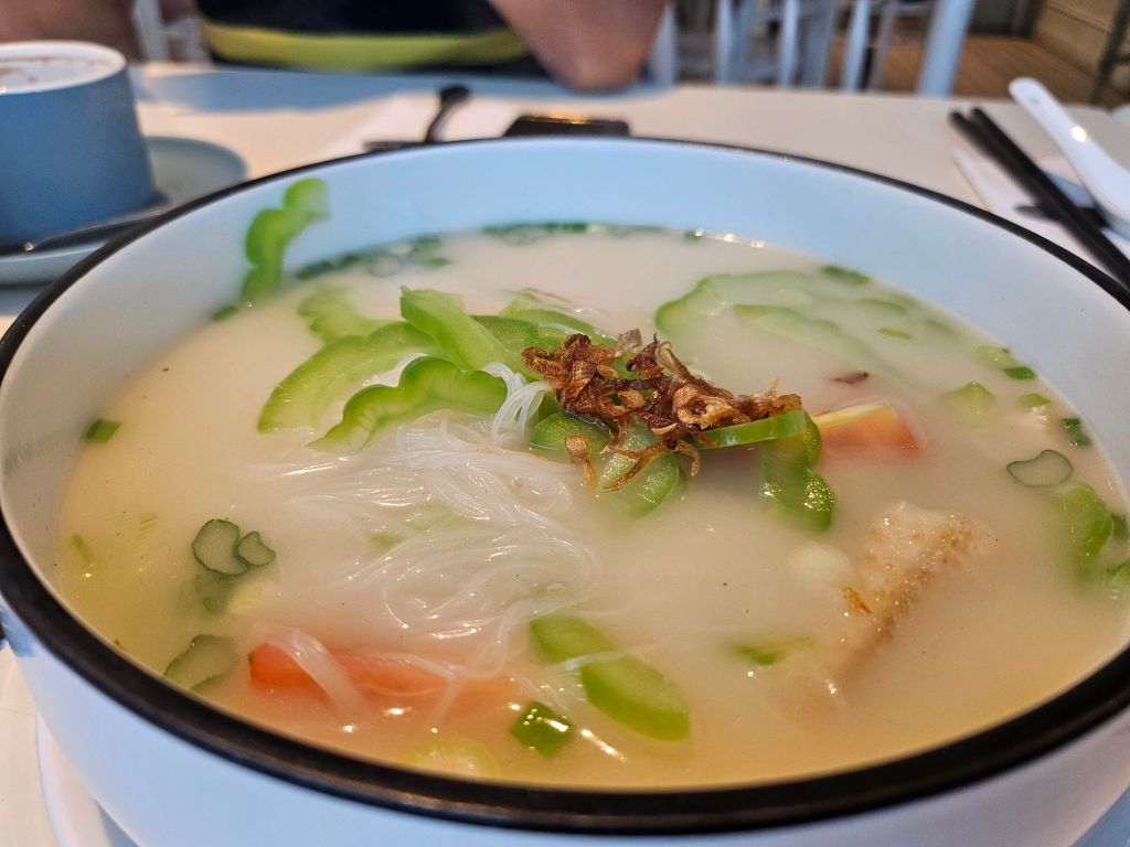 I ordered the fish soup rice vermicelli which came served with bittergroud slices. After having my pasta, I did not have high hopes for the fish soup and expected mediocre food from the cafe but I was pleasantly surprised. While I cannot compare them to a specialised fish soup stall from the hawker centre, the soup is light yet flavourful with a nice natural sweetness from the fish. The bitter groud was cooked till soft and no bitterness affected the soup. The only downside was the fish was full of small bones which is really bad for diners. My mum could hardly eat the fish and we had to forgo the fish and just eat the noodles and vegetables in fear of getting choked by the bones