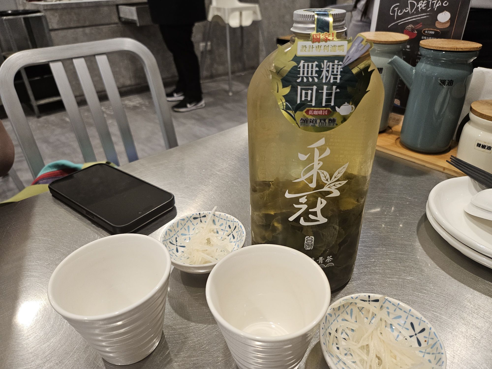 Upon placing our orders, we were served sliced ginger which you can pair with condiments like black vinegar, soy sauce and chilli oil which is available at every table. For drinks, we ordered the non-sugar green tea cold brew which was bottled in this pretty 1-litre bottle which was more than enough for 2 people to share. I love that the tea tasted extremely refreshing for the hot weather and also helped to tame the spicy dishes