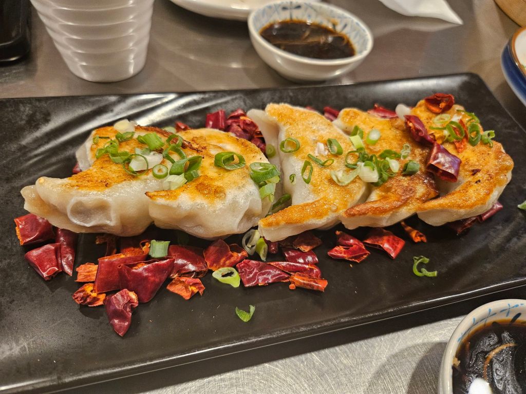 We also ordered the pan-fried guo tie which was nicely browned on one side and soft and chewy on the other side. The dried chilli gave the dumplings a light Mala flavour and was not spicy. The dumplings were the same juicy ones as the vinaigrette ones except the pan-fried side gave it more texture in a bite