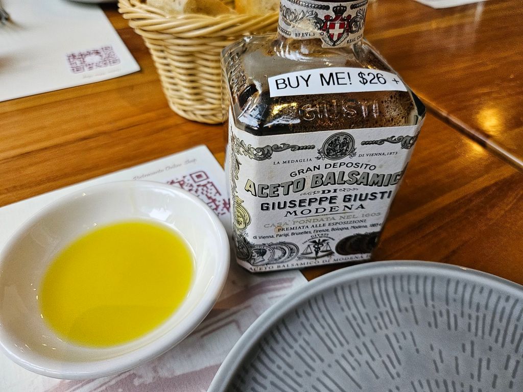 The moment we sat down, we were served a shot glass of tomato extract juice which could be drank or used as a dip. The servers did not explain what the shot glass of tomato juice was used for so we just drank it. We were next served warm bread with olive oil and balsamic vinegar and I noted that they used the Giuseppe Giusti, known for its quality vinegar. The bread was fluffy, warm and decent in terms of flavours but nothing too extraordinary
