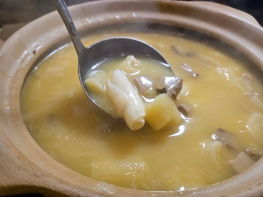 Next, we had another highly recommended dish which is the golden chicken soup with fish maw priced at SGD 58 for medium and SGD 88 for large. We ordered a medium for 5 people and the pot can fill about 6 to 7 bowls. The soup is very thick and creamy with a thick collagen taste which lines your mouth as you drink the soup. The ingredients are quite generous with seafood, fish maw and chunks of meat in it. The soup is best drank hot as it tends to get oily when the soup turns cold
