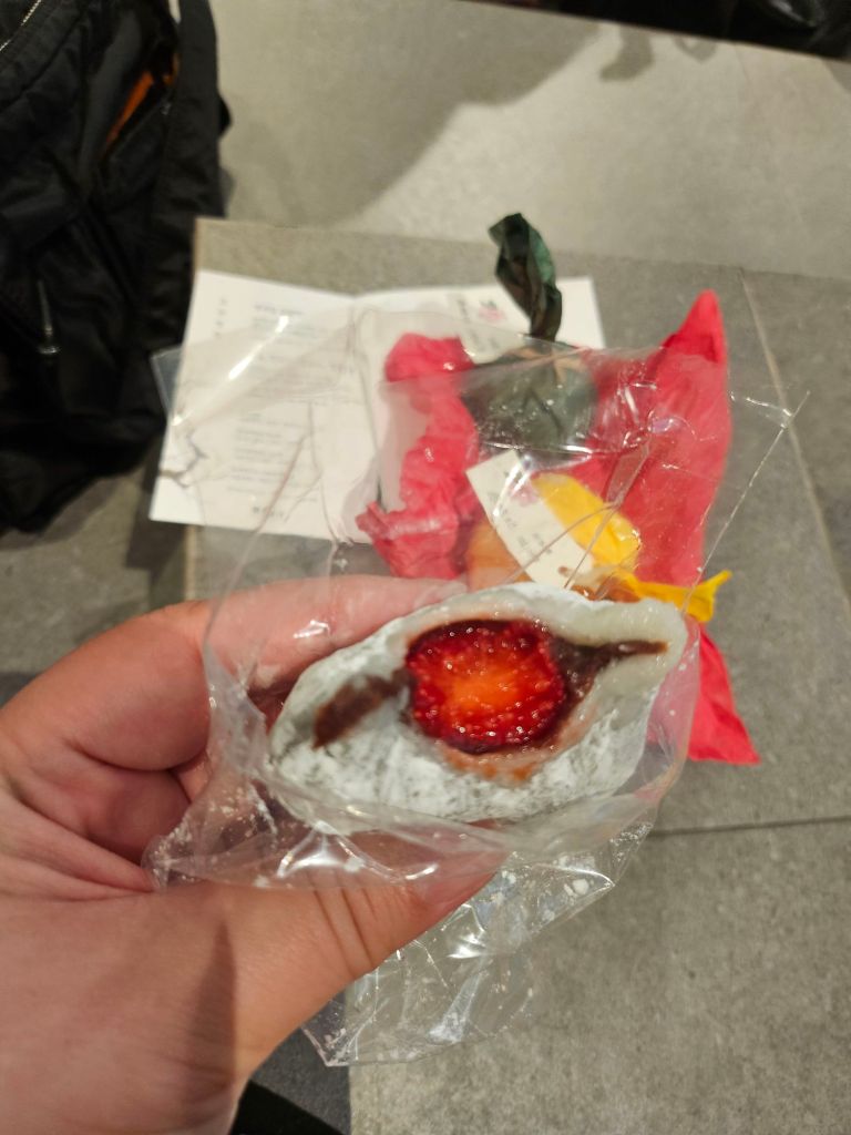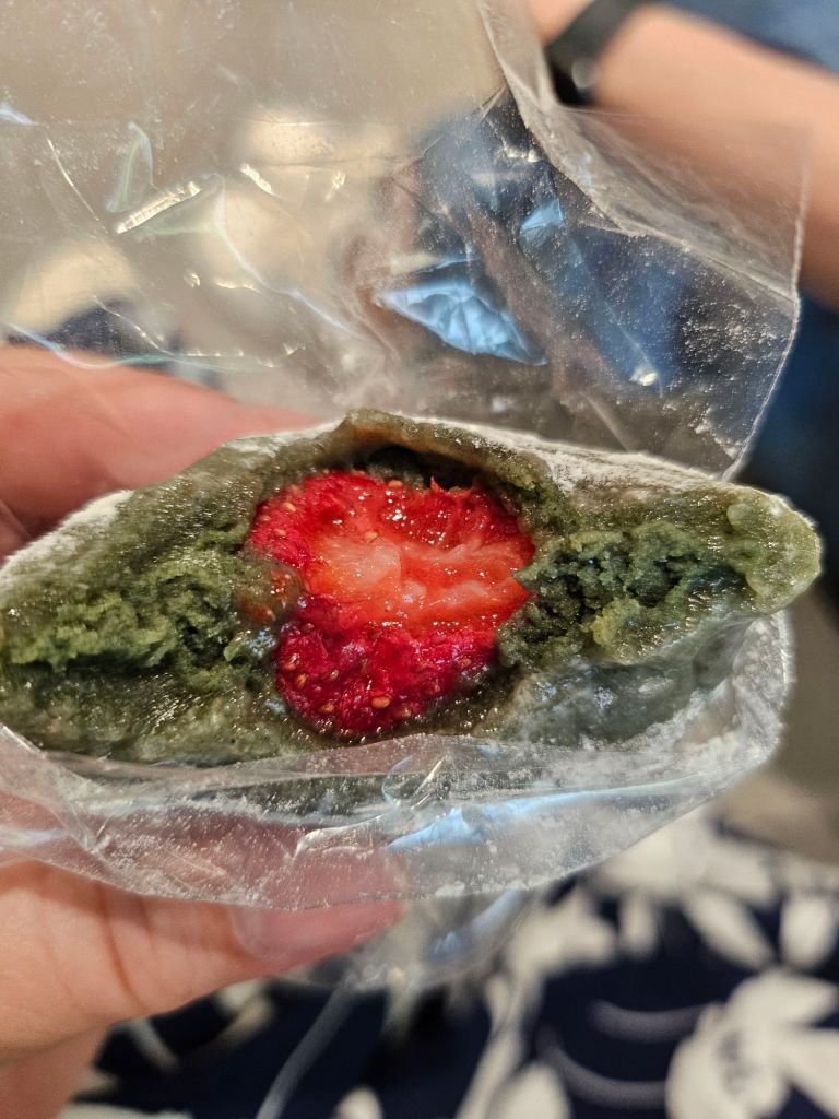 Most of us would be familiar with daifuku mochi from Japan where the snack is made from glutinous flour with a red bean filling. In recent years, there have been new variations where fresh fruits are included within the mochi. I have seen strawberry and grape ones from Don Donki but they are seasonal