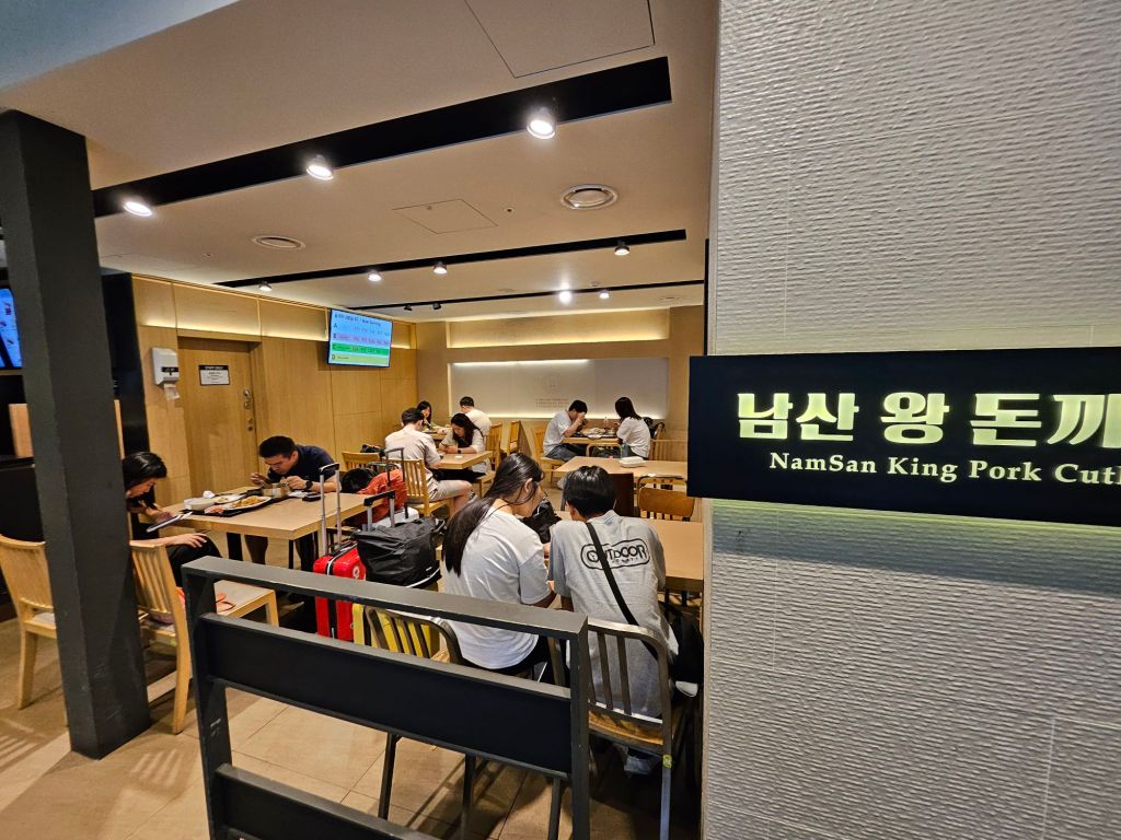 Located near gate 30 on the 4th floor in Terminal 1, the Namsan King Pork Cutlet is the first restaurant you see when you go up the escalator to the 4F.