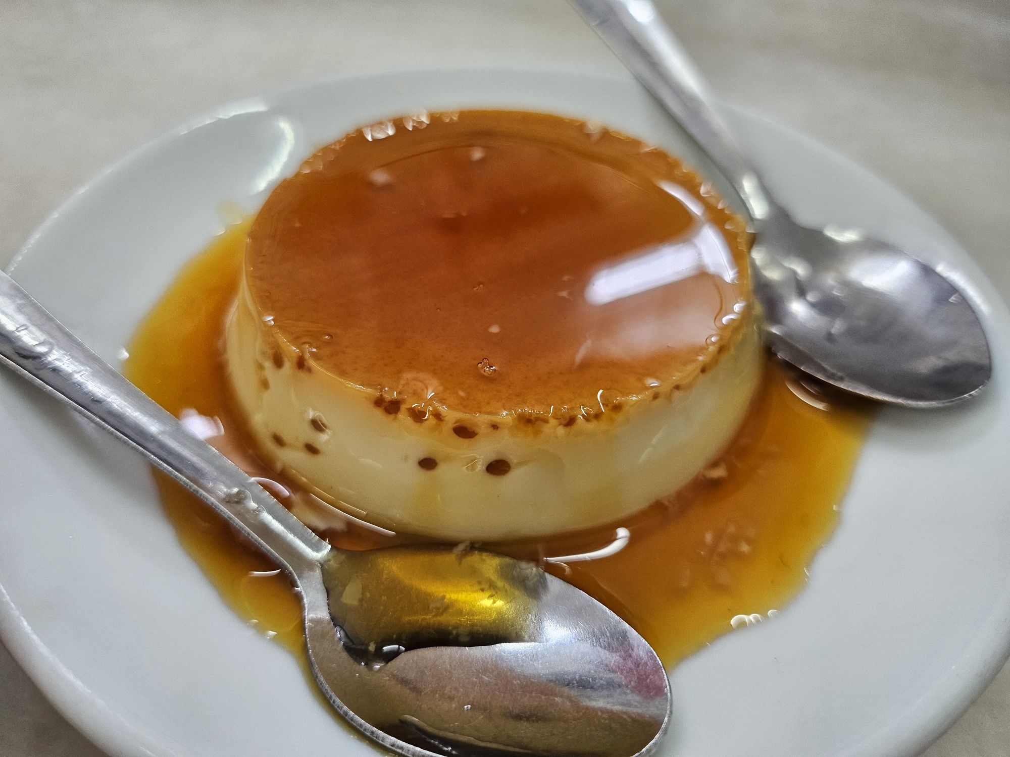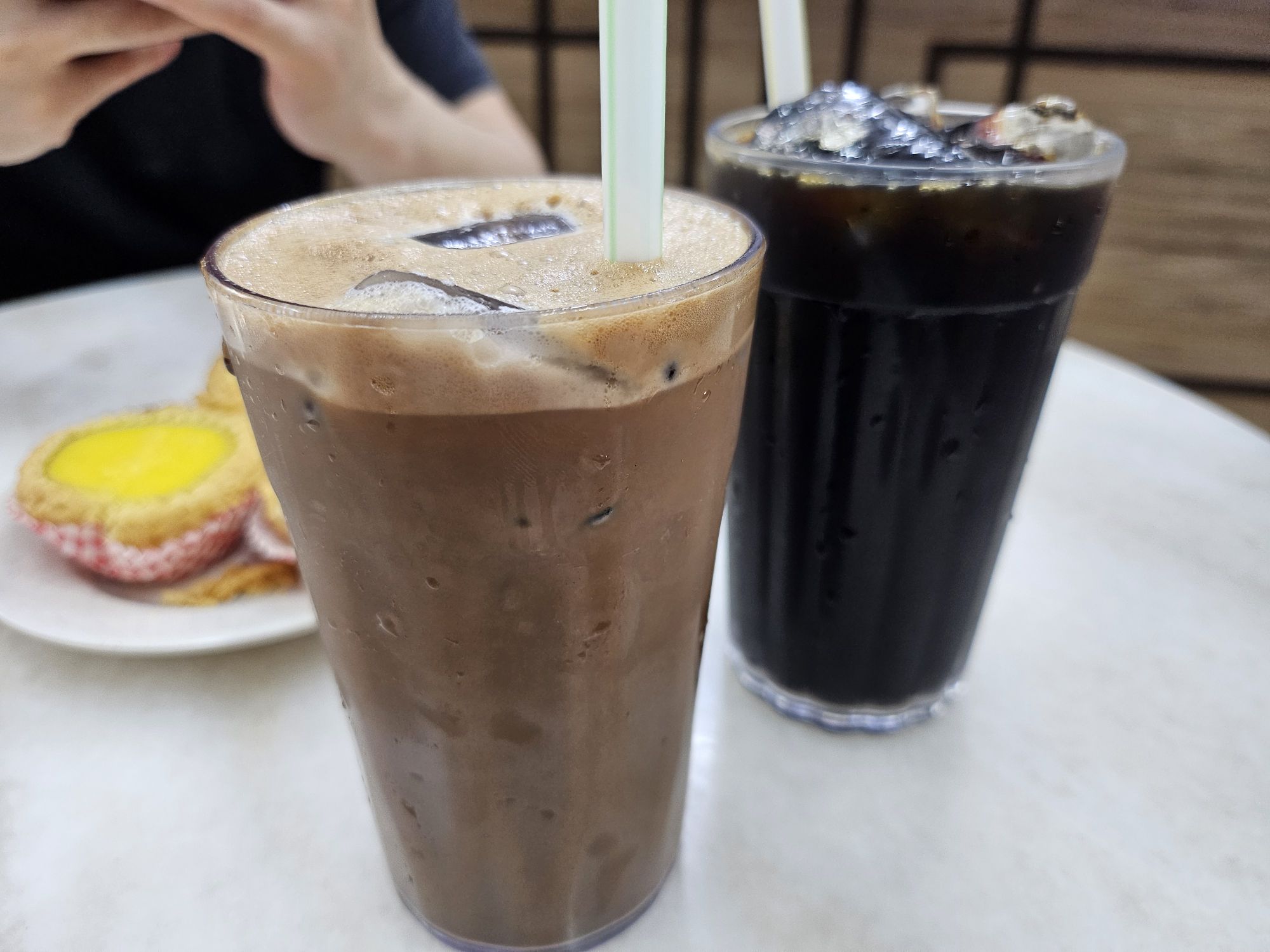 My friend had the kaya toast which was done in the old-fashioned coffee shop way that has a certain thickness to the bread. The kaya was light and not too sweet. The egg tarts were served warm with a flakey crust and soft custard centres. The custard was very smooth and eggy in flavour and was a great tea-time snack. I also had to try their egg custard pudding which was soft and creamy topped with a caramel sweet sauce. The egg flavour was lighter in the pudding with a more milky flavour. Last but not least, the coffee did not disappoint with its smooth frothy milk and strong coffee taste
