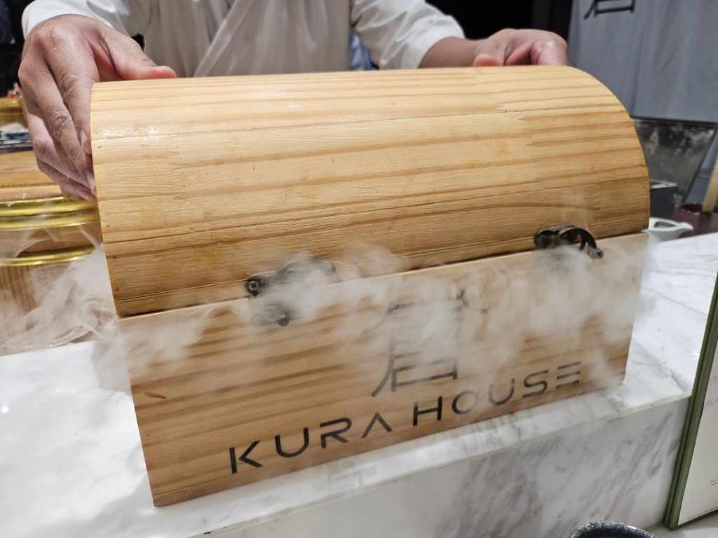 For a start, the team at Kura House would place a nicely printed menu with Japanese-styled paper for each customer to understand the prepared course meal. Before the beginning of the course meal, the chef brought us this little chest box with smoke and showed us the treasure box of ingredients used in the meal. Ingredients included various types of fish, seafood like scallops, prawns and even caviar