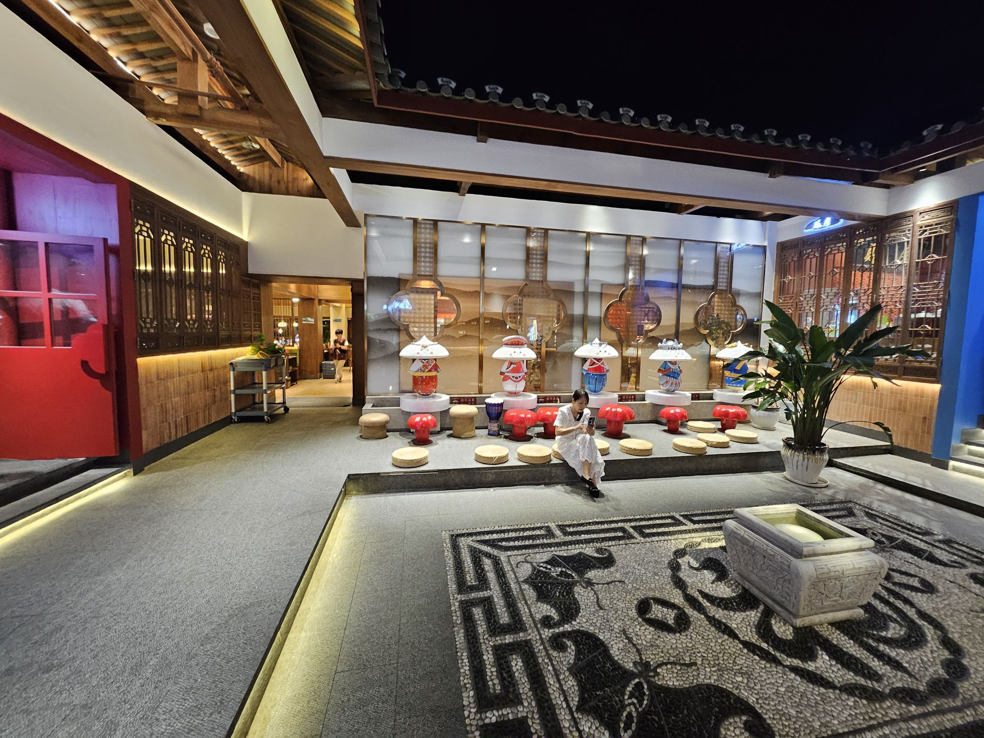 The restaurant has a beautiful courtyard with some decorations for customers to take photos of and many resting areas for people to sit down and rest. The dining areas are split into different halls as the restaurant building layout is in such a way that only the outer perimeter has dining spaces while the inner court and space are for private dining