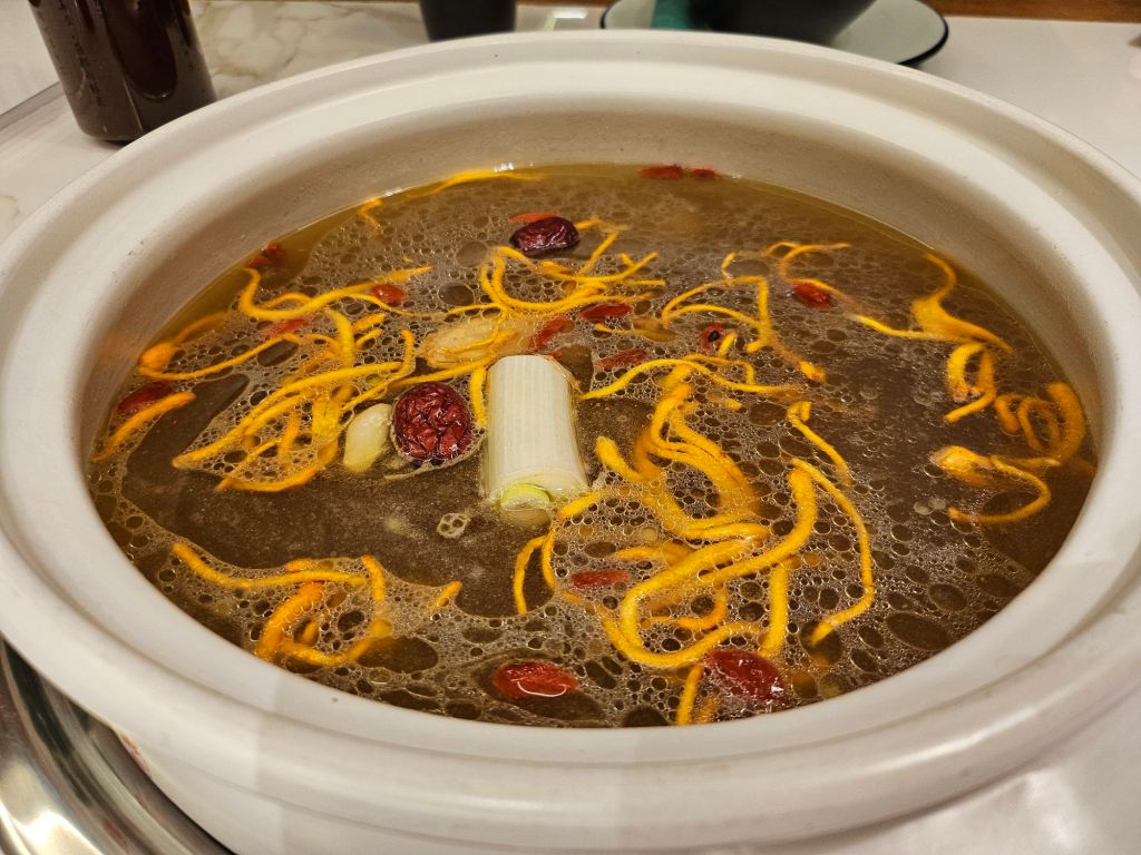 The main soup base is served first and depending on your selection of the base, ours came with loads of cordyceps mushroom, red dates and wolfberries