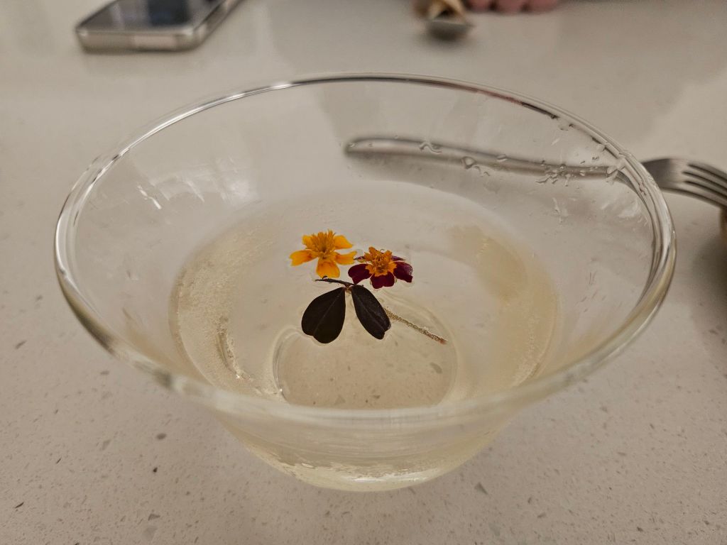 One of us ordered the Uri Oolong, which came served in this pretty glass and was exquisitely decorated with flowers. The cocktail was a mix of oolong tea with gin, melon, and sparkling water. A very light flavoured cocktail, it gives the sweetness of melon and the crispness of gin altogether in one mouth. The only complaint is that the cup was hardly 2 to 3 mouthfuls
