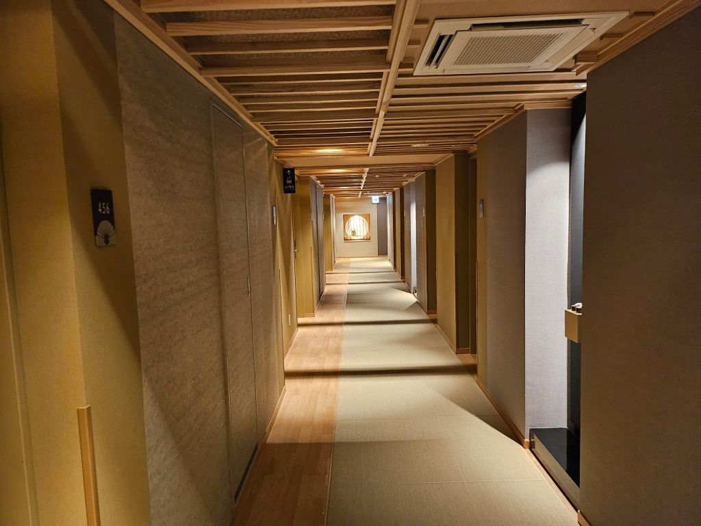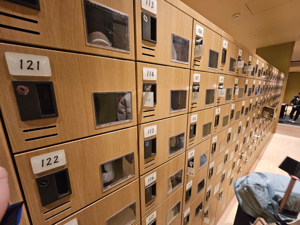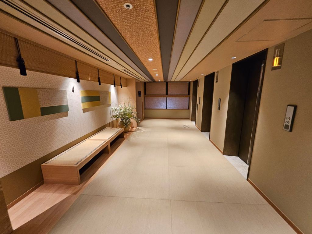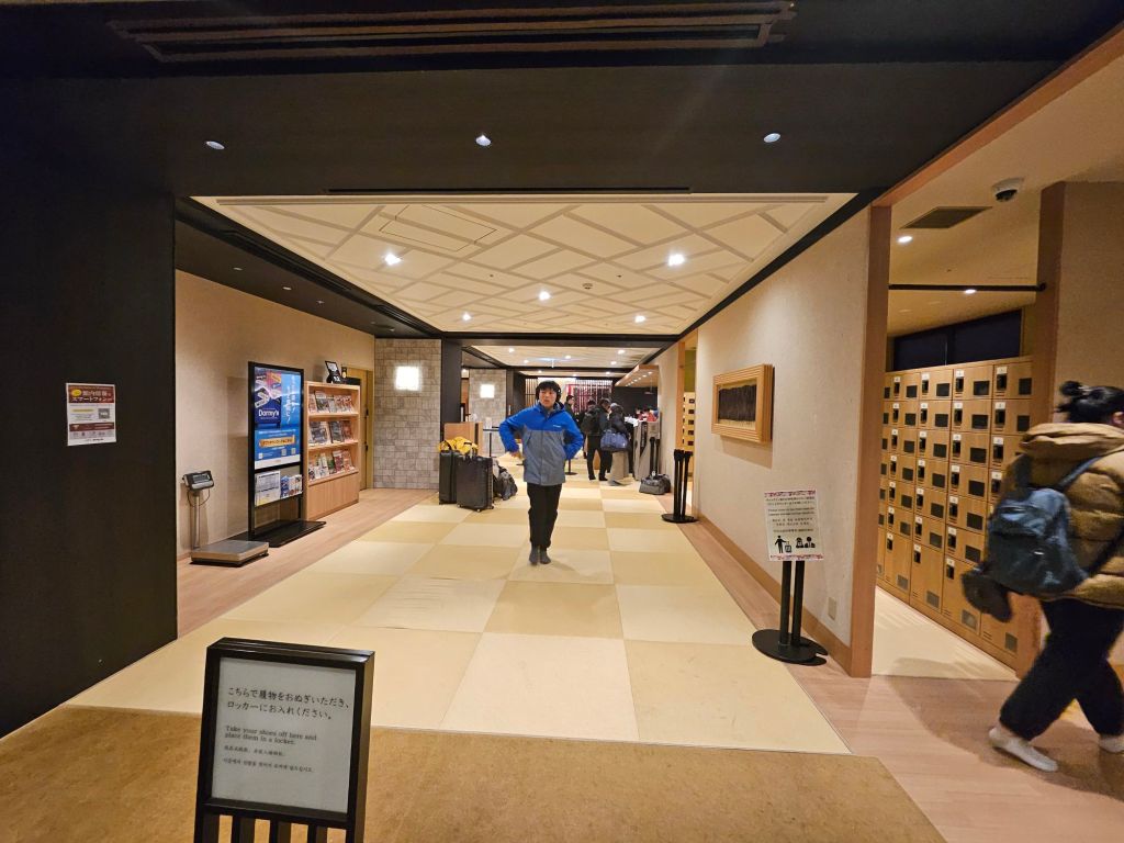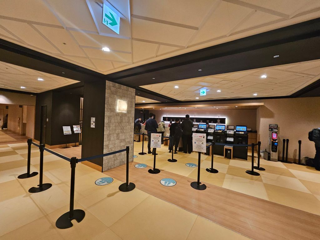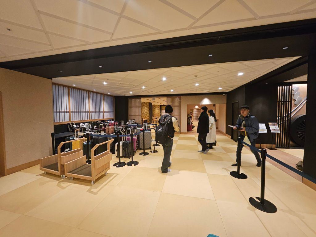 Opened in 2021, the property is relatively new and quite well maintained. As all guests are required to remove their shoes before entering the rest of the property, the tatami floor is kept clean. All customers will have to leave their shoes in the locker area to the right side of the lobby, where there are more than 200 shoe lockers with keys. You will carry the locker key with you each time you are inside the hotel. For those feeling shy, you need to remember to wear pretty socks. The check-in counter is past the shoe lockers and has both self-service and assisted counters. There is a systematic queue in play, and staff appear to direct you to the counters. The check-in process took about 15 minutes and was pretty smooth. We sent our big pieces of luggage from Osaka, and it arrived before our check-in