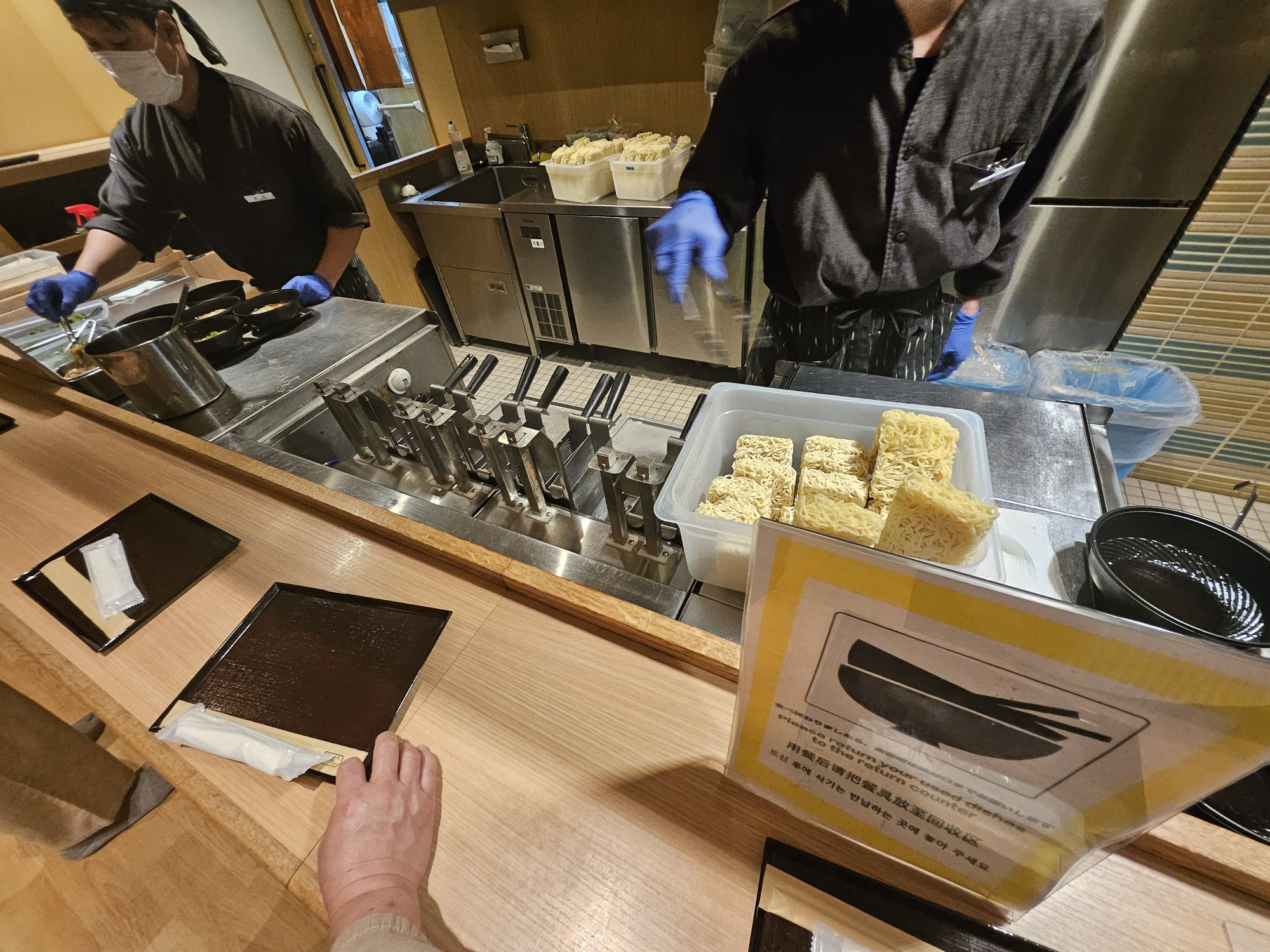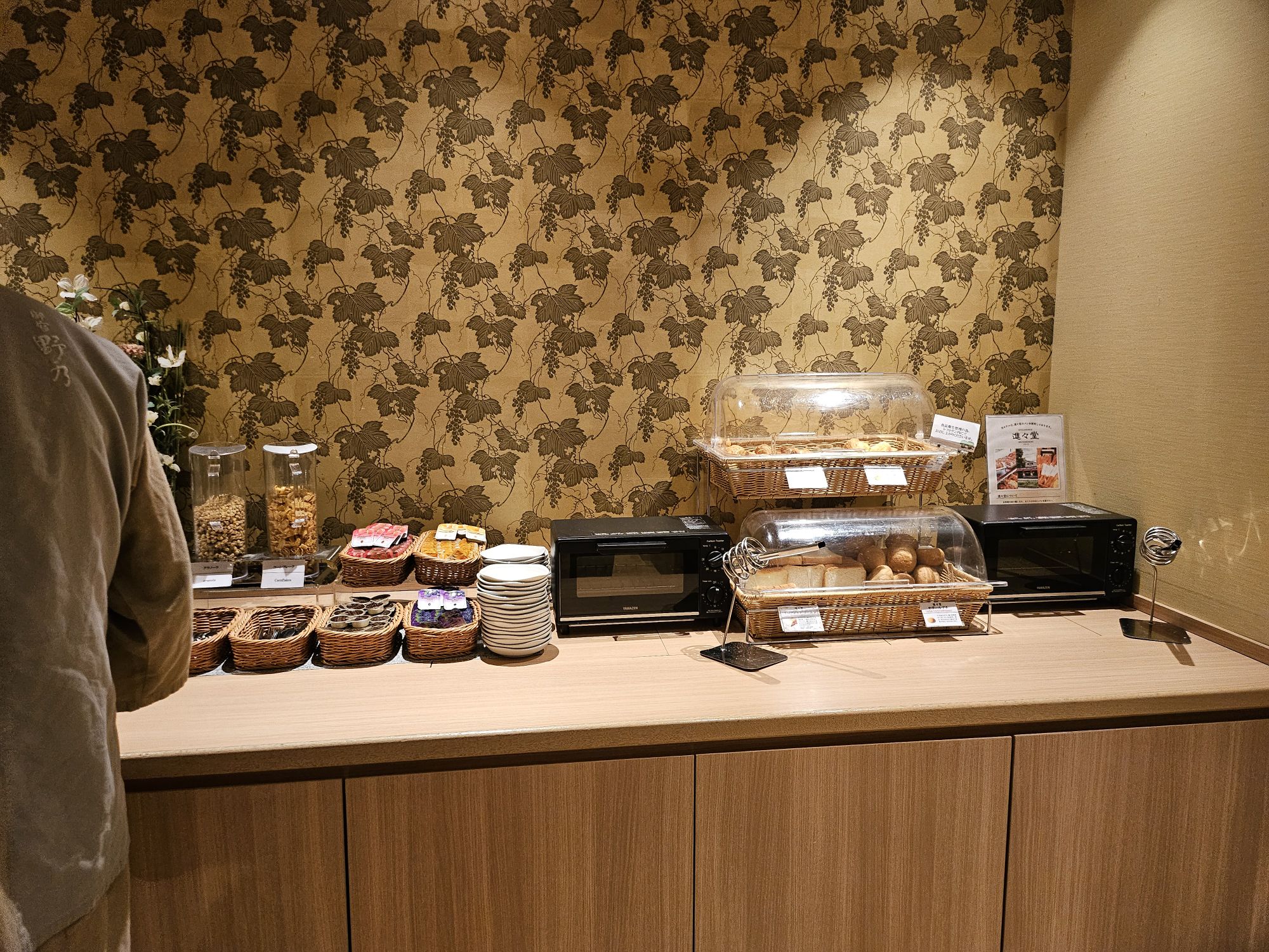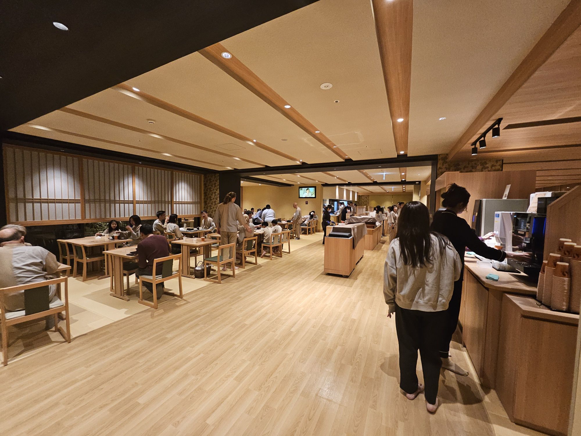 After getting a quick rest, we went to explore the rest of the hotel and also claim our free ramen for supper. The restaurant for breakfast and supper was located on the 1st floor. Supper is from 9 pm to 11 pm and is free for all guests. There is a free beverage during supper time via the machine with selections like coffee, tea, matcha and hot chocolate. We found ourselves an empty table and went ahead to queue for the noodles through the very systematic arrangement of each guest getting a tray and utensil and waiting for an available bowl of ramen. 2 chefs are cooking during supper, and they serve the ramen very fast since there is only 1 type of ramen and no special customisation. The bowl of noodles is quite a substantial amount for 1 person for supper, as it fills the stomach with warm soup and is not overly filling on the stomach. The noodles were chewy and springy with toppings of green onions and bamboo shoots, and shoyu-based broth