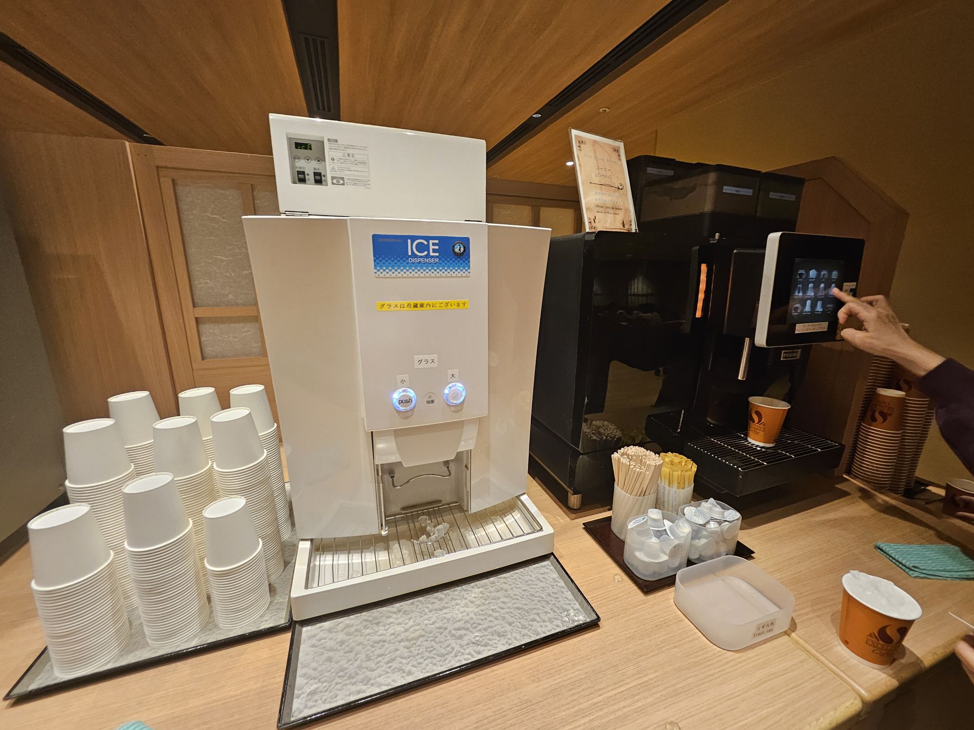 The lobby area is very spacious, with an area set aside for free beverages from the dispensers throughout the day and shelves which provide different amenities for use during the stay. They also provide toe socks for use when walking around the internal hotel area. They also hold luggage for guests who have checked out