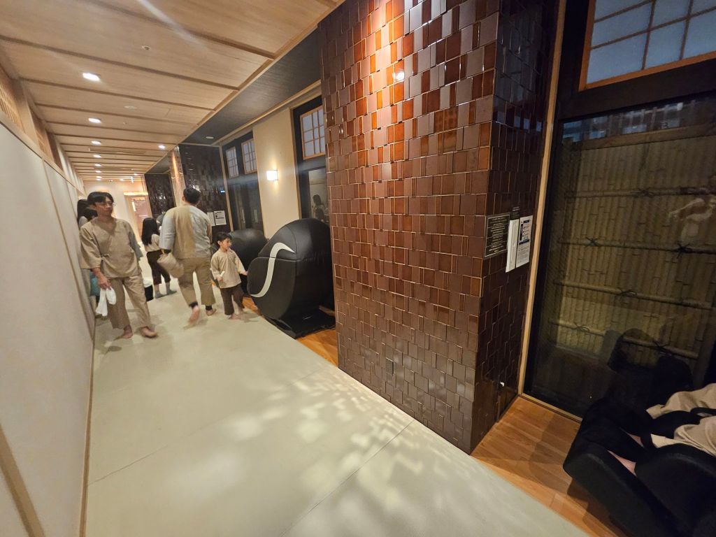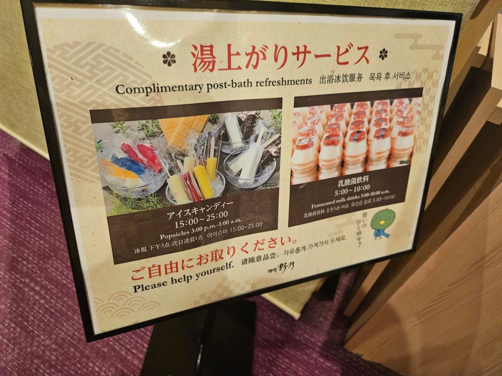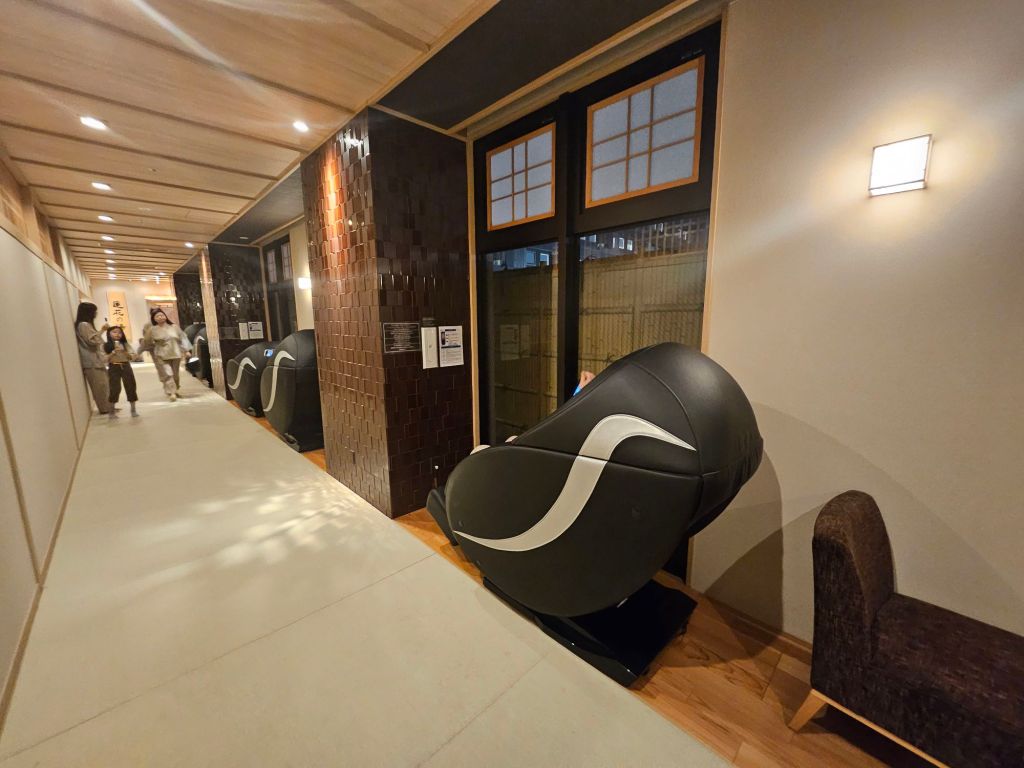 After supper, we explored the rest of the areas, and there was a corridor full of massage chairs and sofa seating for customers to chill and rest. There is also a lounge area where guests can get a free flow of ice popsicles from 3 pm to 1 am and Yakult from 5 am to 10 am. The onsen is split into Male and Female, and there is a given code to enter the female onsen for safety. There is also a laundry room with many machines, an area with a microwave and more than 2 drinks and snacks vending machines for guests who do not wish to venture out of the hotel to buy stuff