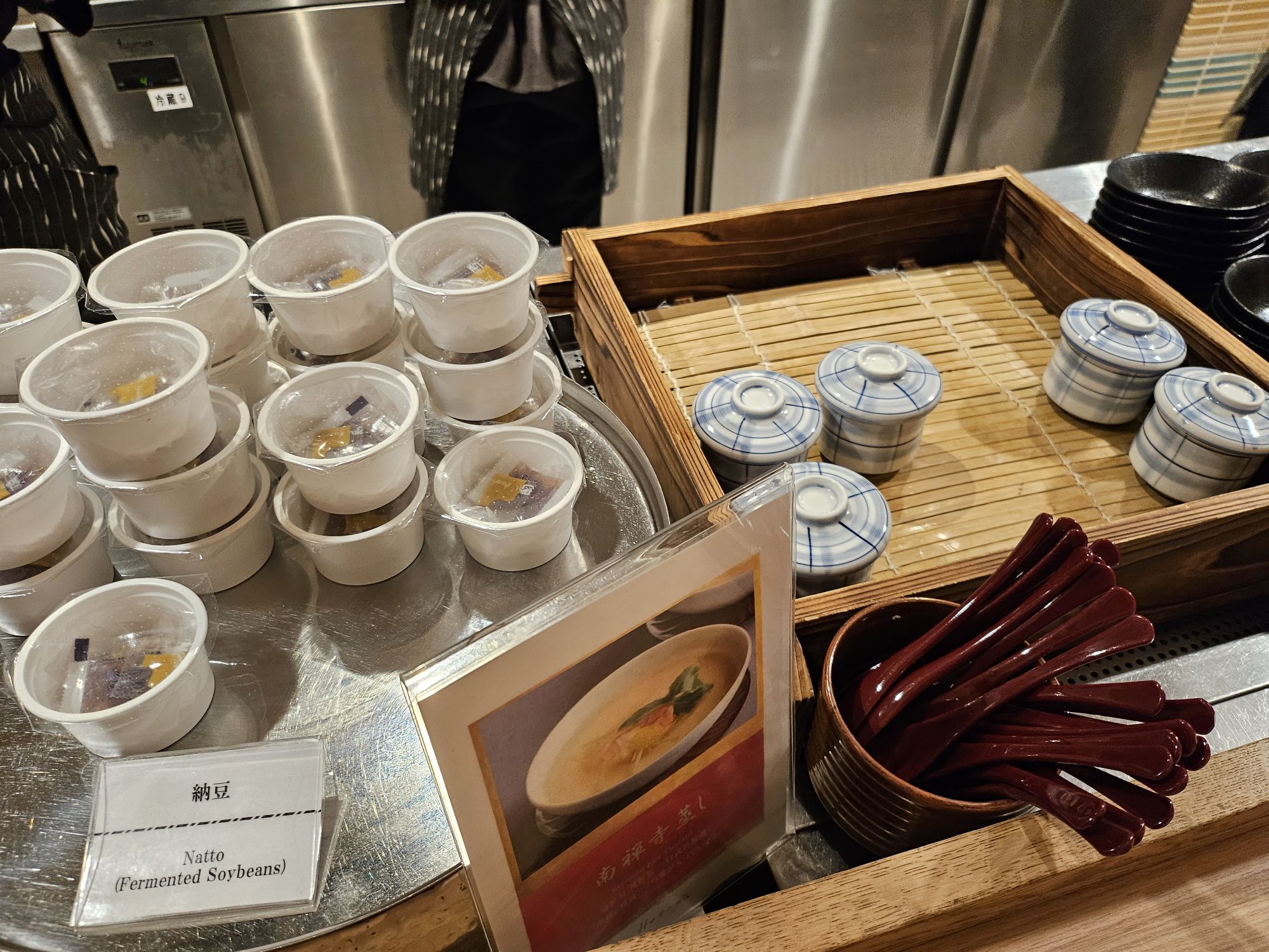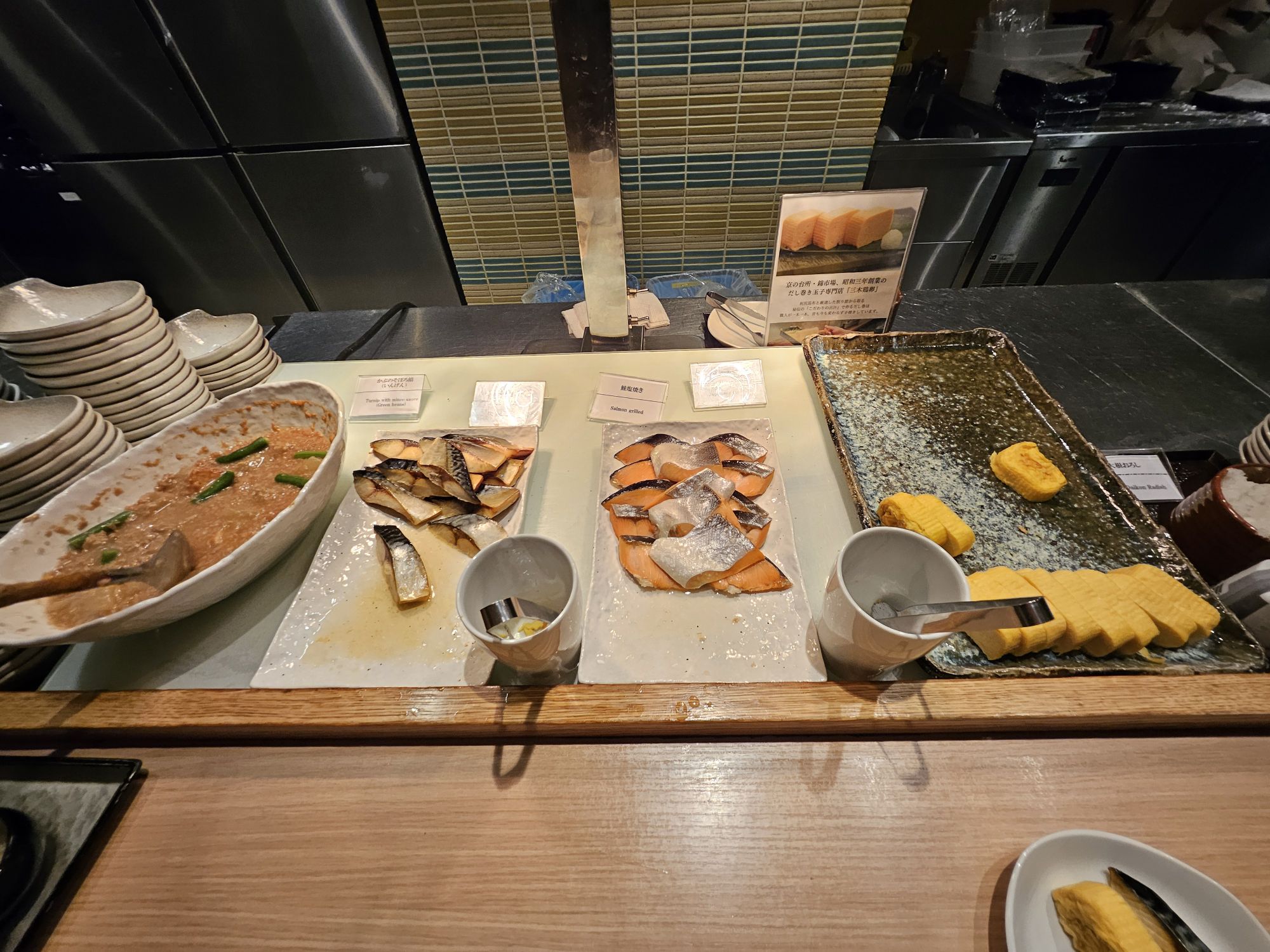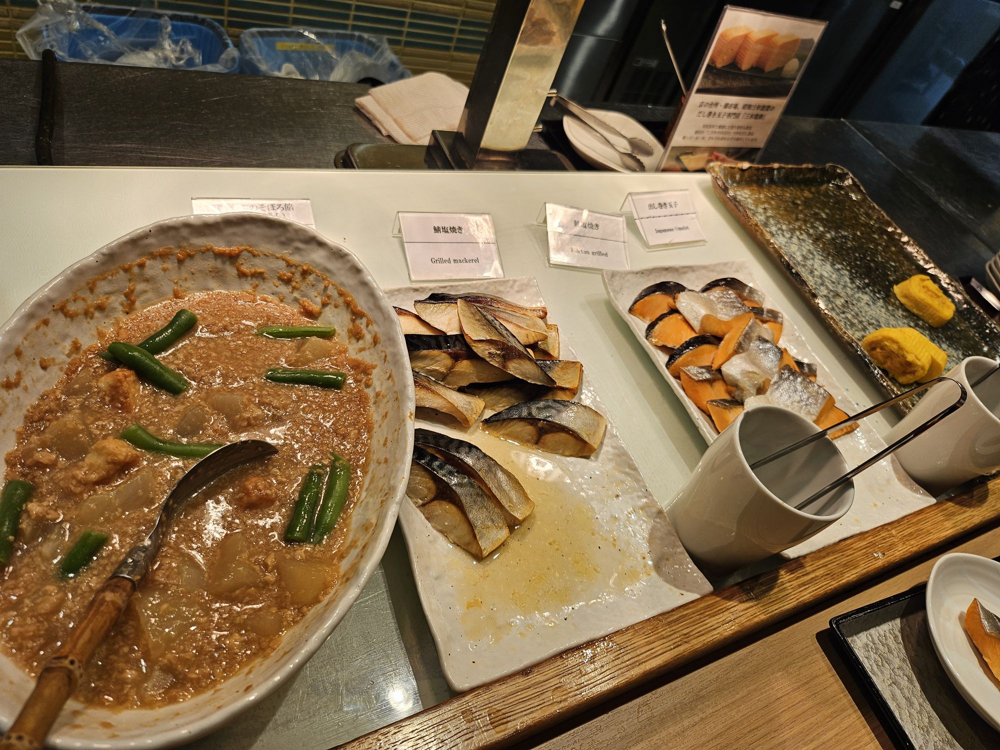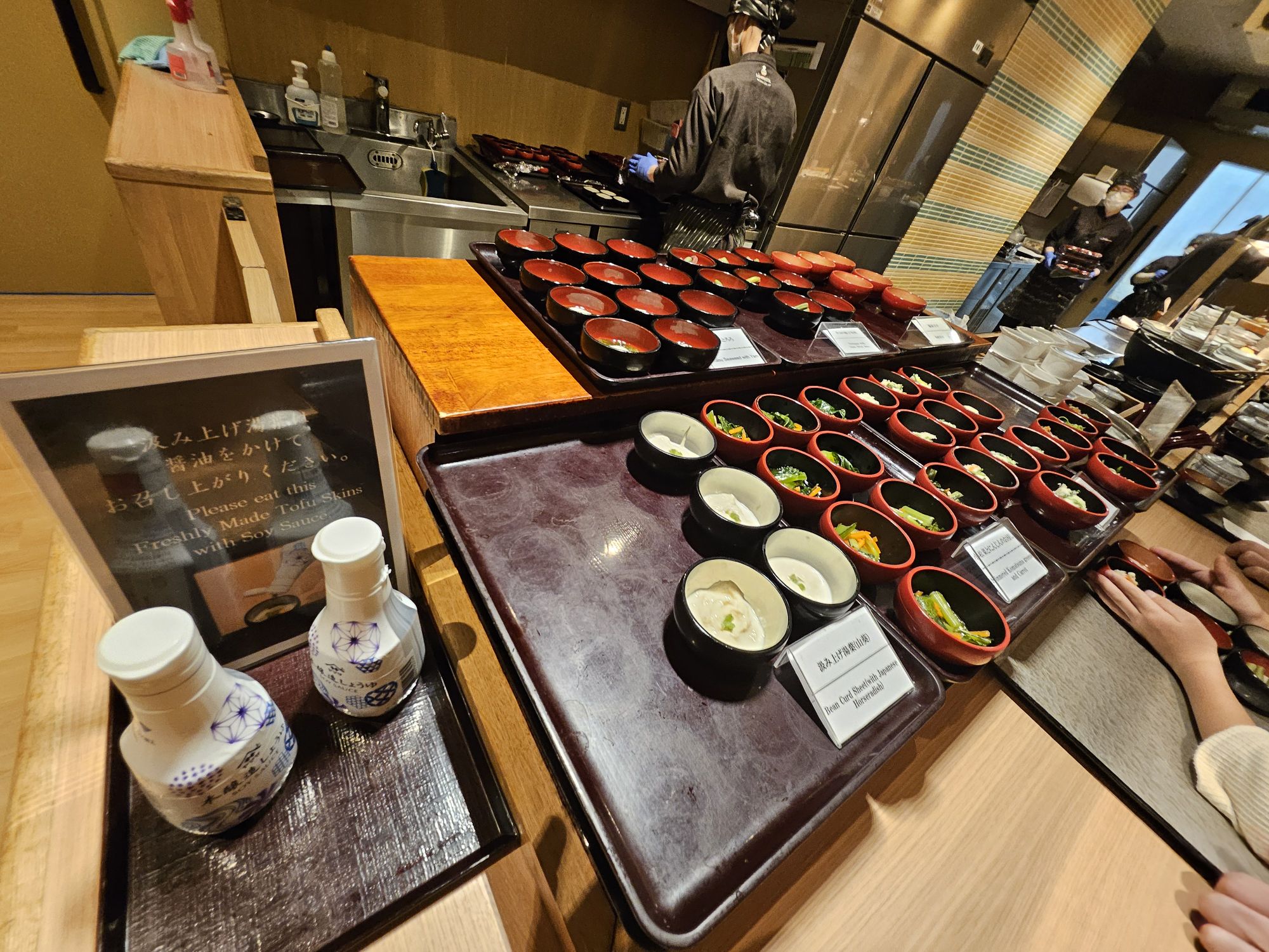 Next is the highlight of the stay, which is the breakfast. One of the main reasons I booked this hotel is due to the breakfast. I booked rooms which came packaged with breakfast, which cost about SGD 20 to 30 more per night. On our first morning, we went down for breakfast around 8am, and it was already very packed with ushers assigning us to tables to help with the flow of customers. Signs were put up to ensure all customers follow the flow and no jumping of the queue is allowed. You start the queue by picking up a tray or trolley with 2 trays and approach the first station, the pickled station, which has a wide array of pickled vegetables like cucumber, radish, plum, seaweed, bamboo shoots and more. The next station was the small side dish station with items like natto, chawanmushi, miso soup, chilled tofu, seasoned sesame vegetables, potato salads, etc. The next station was a big pot of braised beef with onions, which I skipped