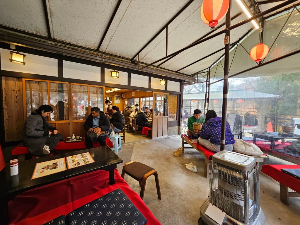 We decided to go for the indoor area, which has a plastic curtain to block out the cold air. There were also heaters in the tent area, so it was much warmer than outside. There were only traditional wooden seats where you take off your shoes and sit cross-legged for the meal. As I had difficulty sitting cross-legged, I managed to get a chair and sat at the edge of the table. For others who cannot sit eating cross-legged, you can ask for the internal tables, which have proper tables and chairs, which would be a longer wait