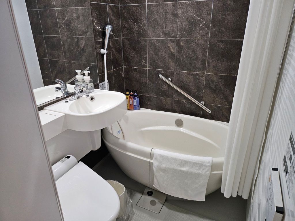 The bathroom is the expected size of Japanese hotels with a fitted bathtub, bidet toilet and sink. All amenities like shampoo, body foam and conditioner is all provided within the bathroom. It is great that they provided grab bars as well near the bathtub for safety
