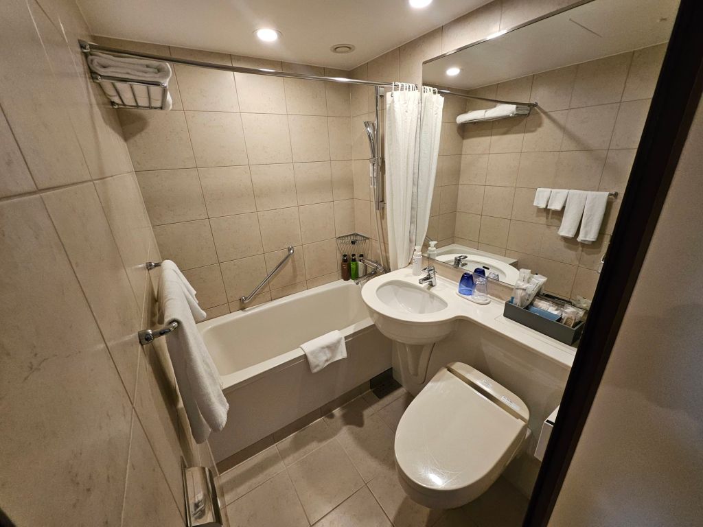 The toilet size is normal for Japanese hotels and comes with a bidet toilet. The area around the basin is quite tight, but they manage to fit in full sets of amenities for use on the counter area right next to the basin. There is not much storage area for you to put your facial or skincare products, so I left everything outside the toilet. Water pressure was good, and the bathtub was also spacious enough for my legs to stretch fully