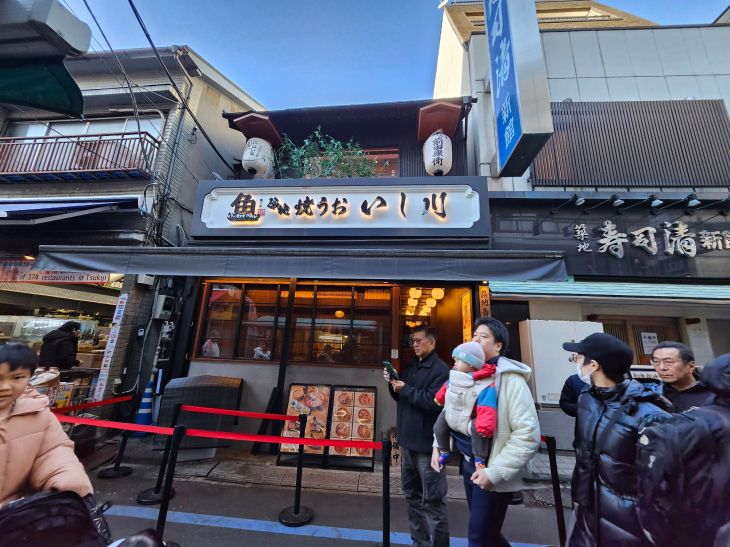 Back to the restaurant itself, it is located in one of the alleys in Tsukiji Market and along rows of shops and vendors selling dried seafood, grilled seafood, as well as souvenirs. I was looking intently for the restaurant since there were no English signs, and Google Maps only showed the English name of the restaurant. After missing the restaurant and turning back, I was too early, and they were still preparing, so I walked around the market