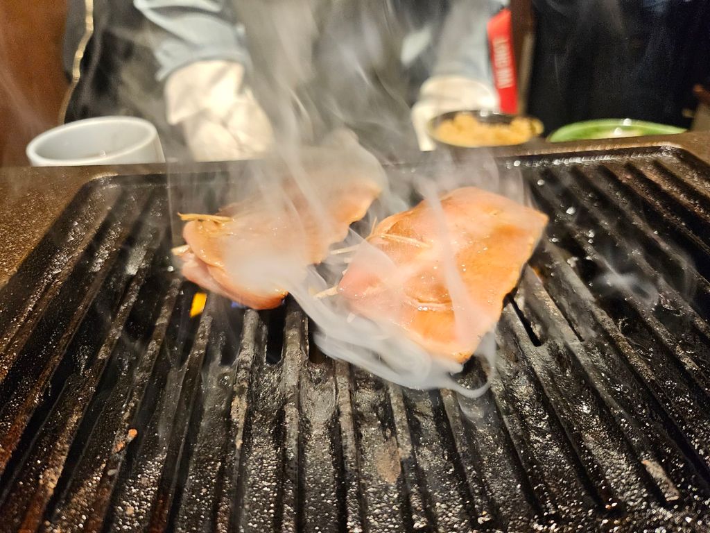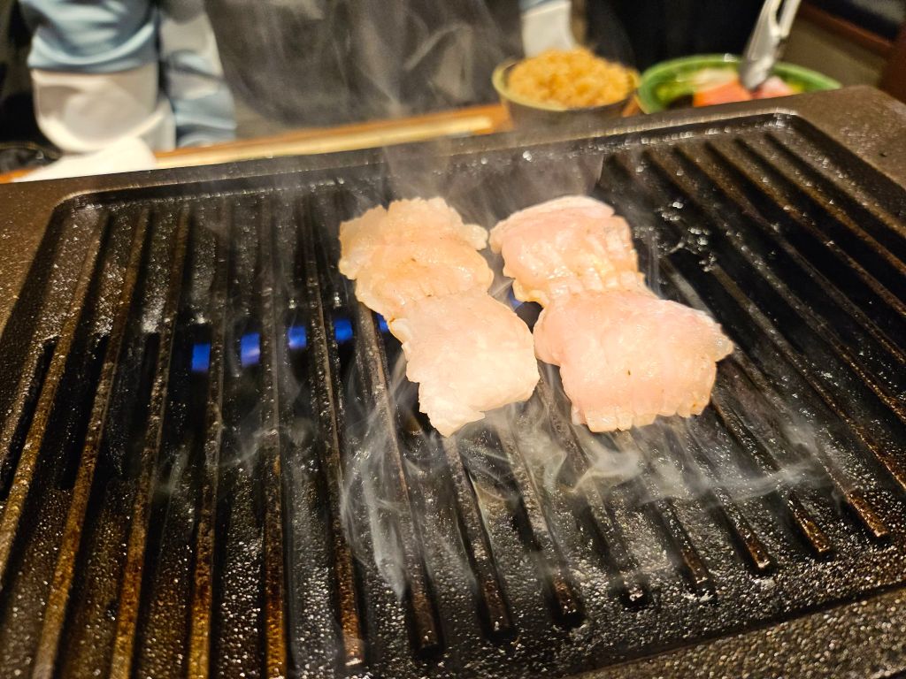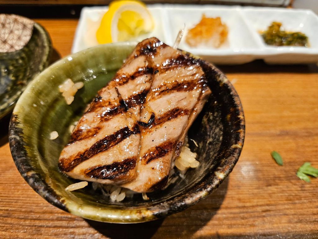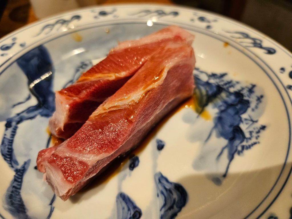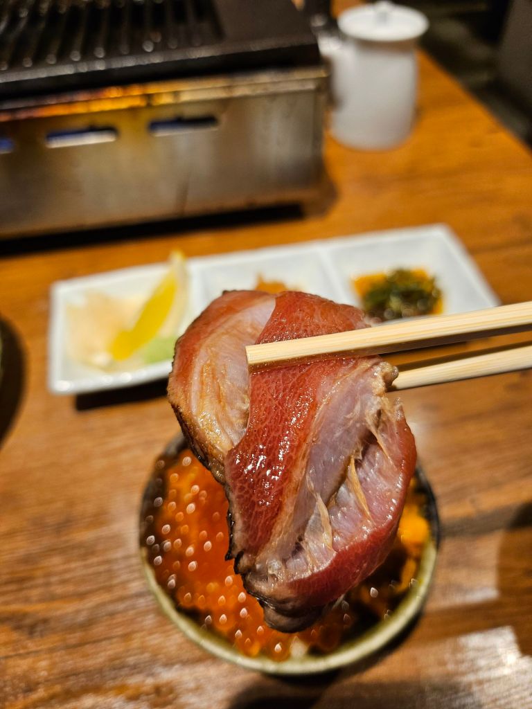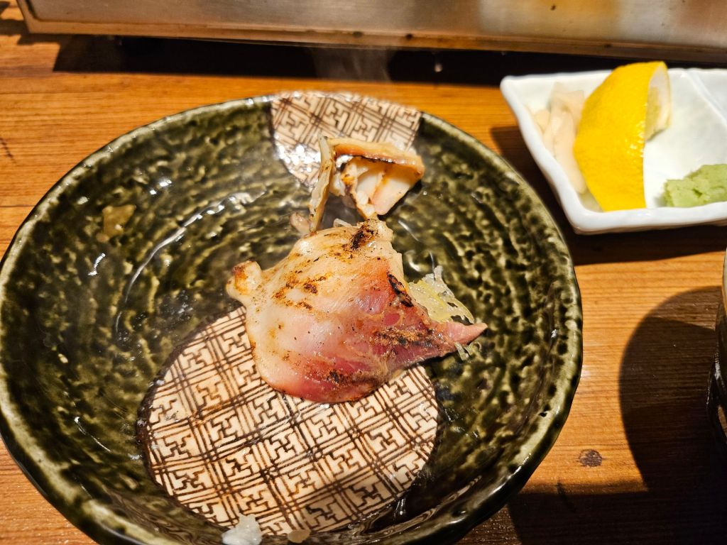 The staff will give you instructions in simple English on how to enjoy the course. Firstly, they start by grilling the thick tuna belly on the grill, which is quite smoky, but the smell is also mouth-watering