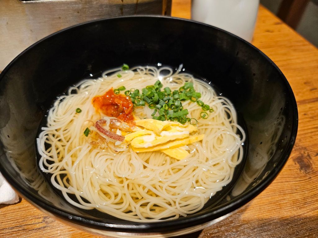 Next, to clear off the meat flavours to make way for the highlight of the meal, we were served somen in light broth and topped with shredded spring onions and egg. The noodle was chewy and refreshing for the palate, and it helped to fill up the stomach. The way the course was planned was very balanced for the palate to take a break before continuing. Lastly, they served us the grilled cho toro, which was in a thinner chunk compared to the Otoro. We were served the perfectly grilled fish with charred lines, and it resembled a piece of grilled meat. The flavour was also almost like meat with an oily taste.